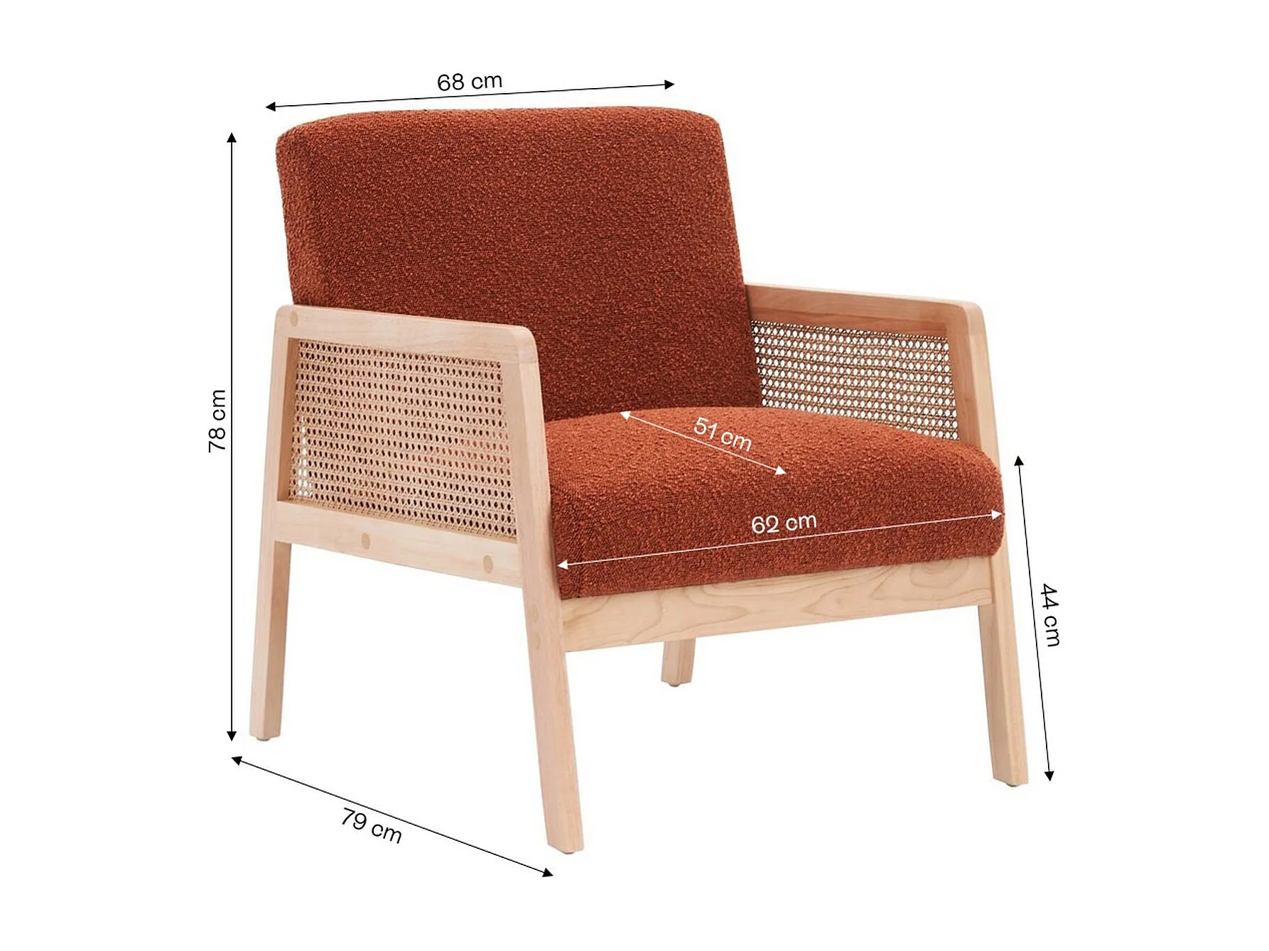 Fauteuil en cannage et tissu bouclé rouille - Mani