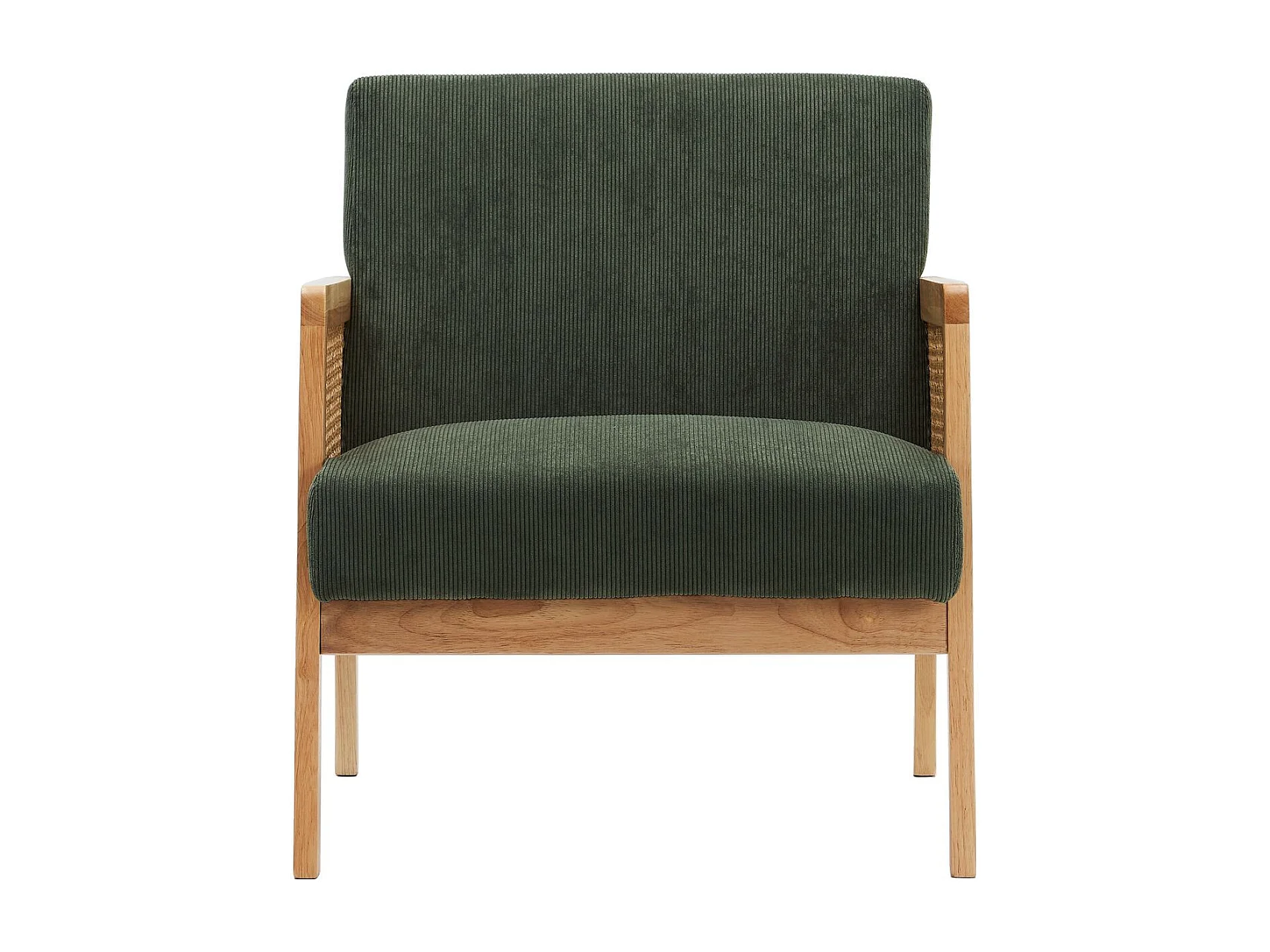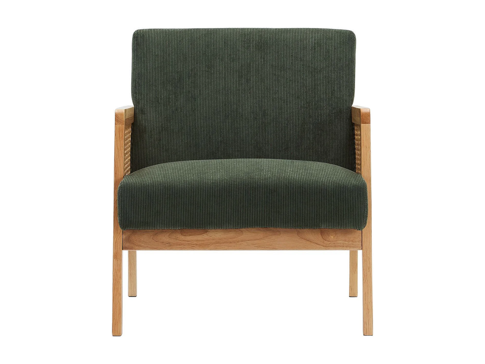 Fauteuil en cannage et velours côtelé vert kaki - Mani