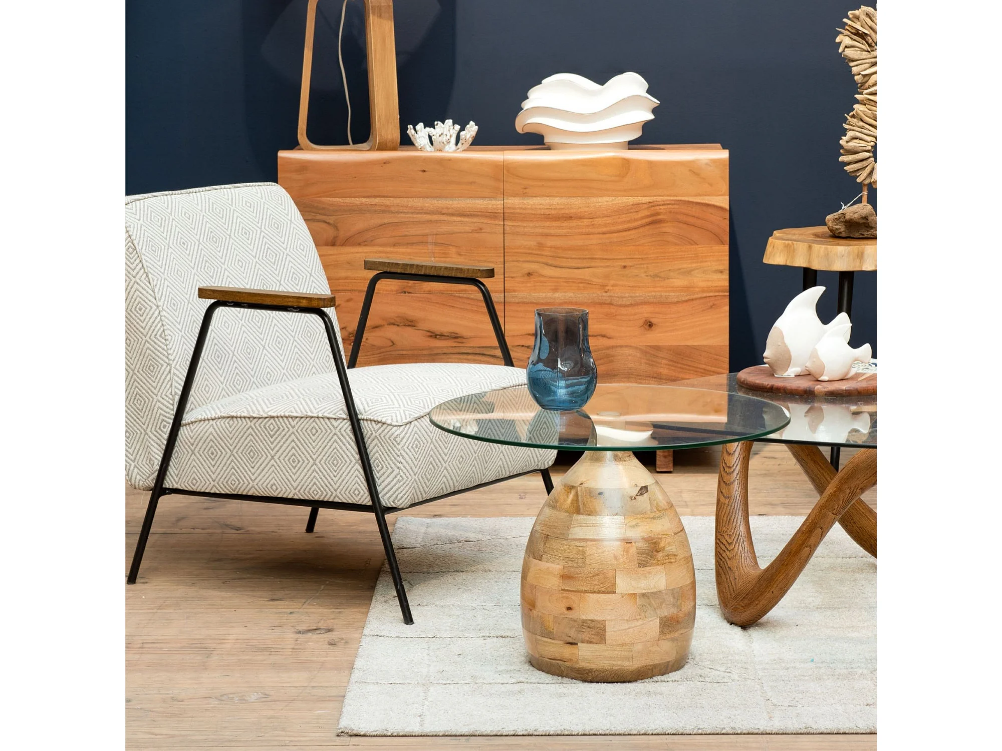 Fauteuil en tissu à carreaux ivoire et gris - SINTRA