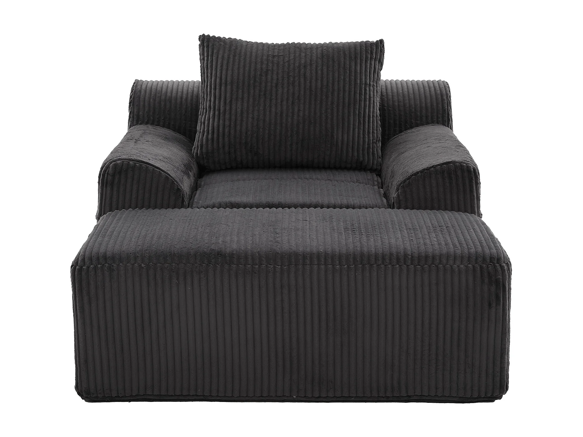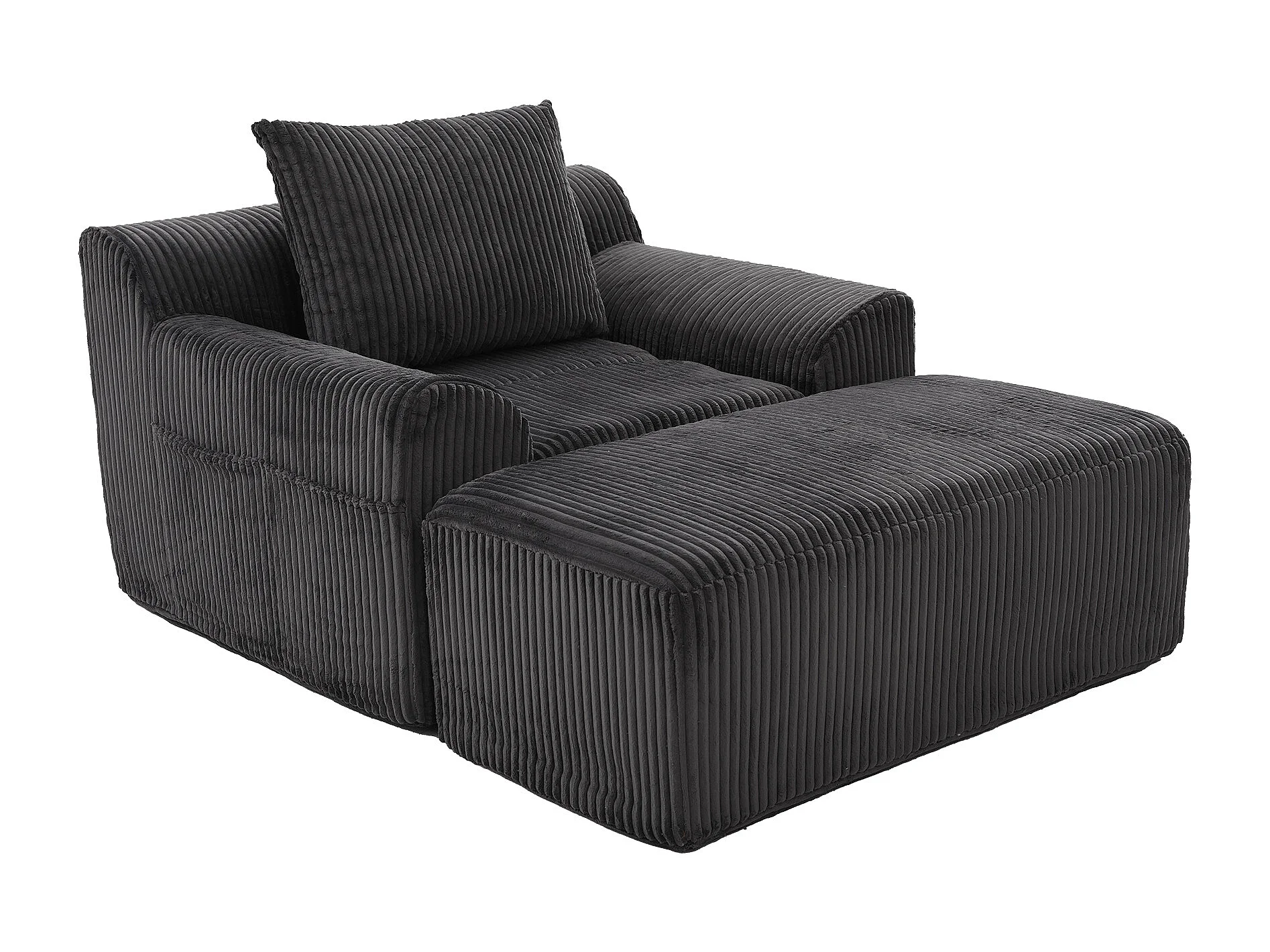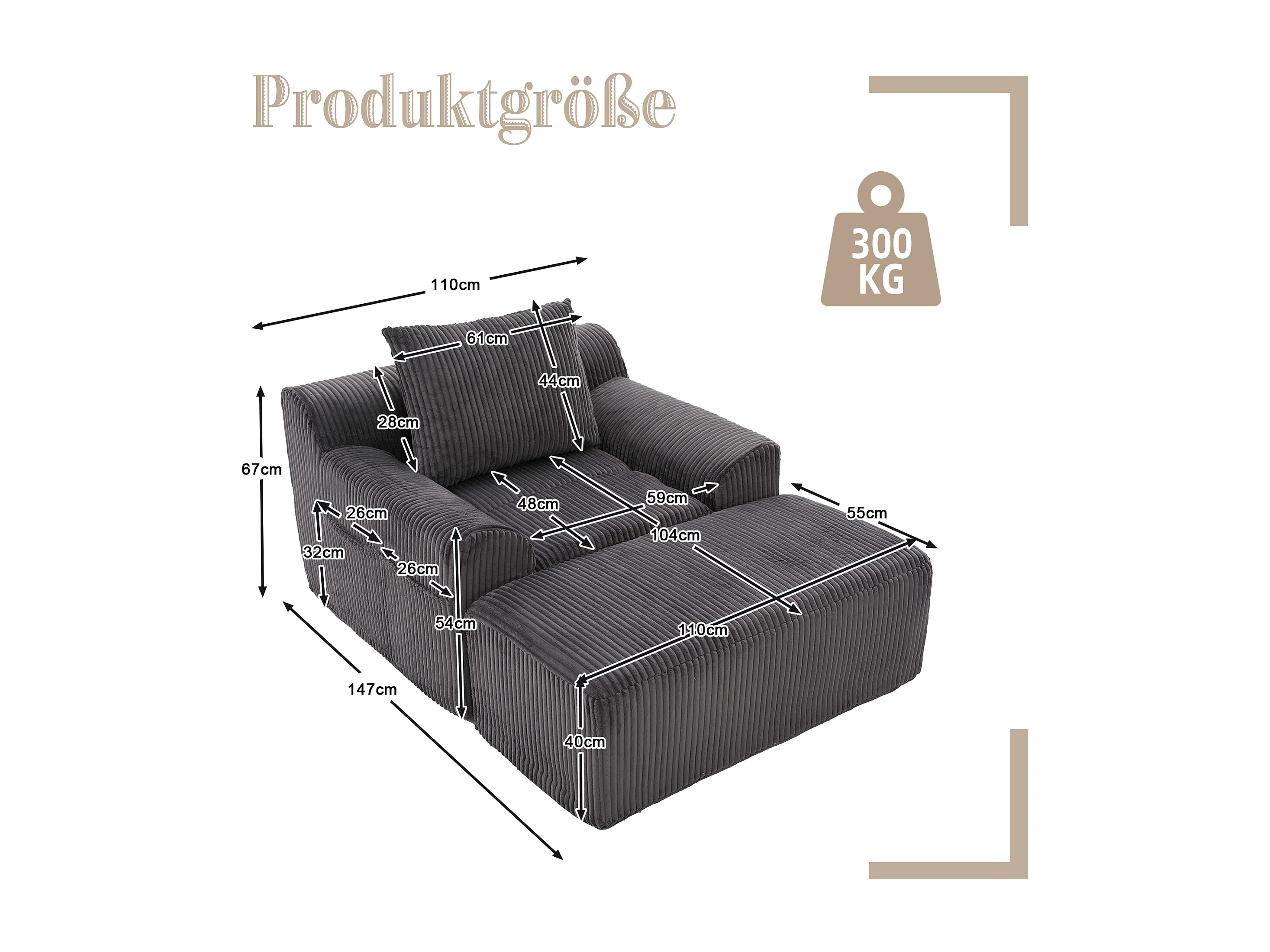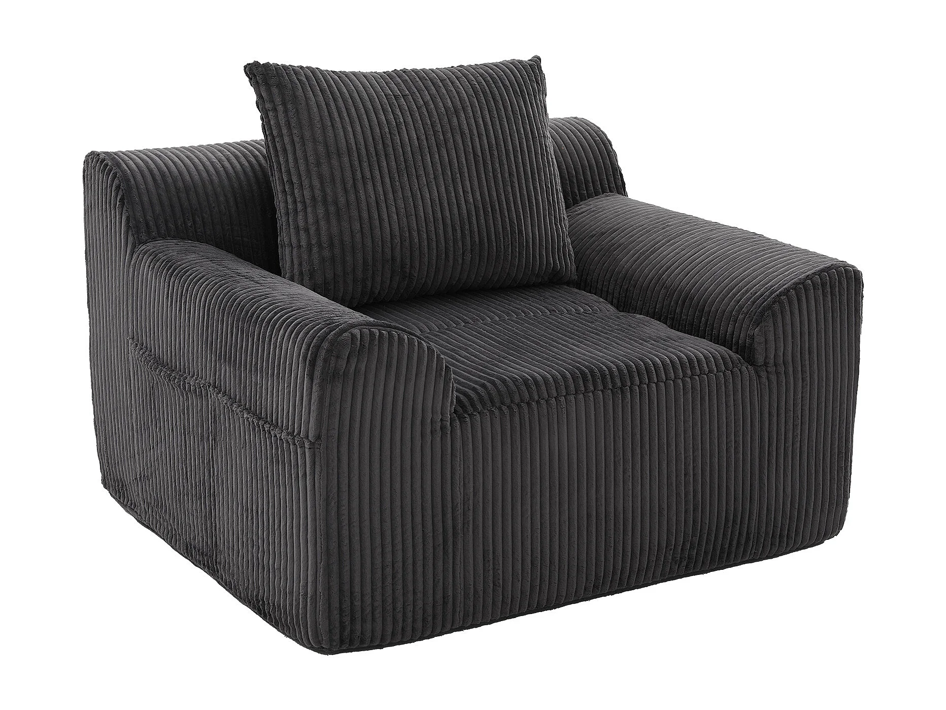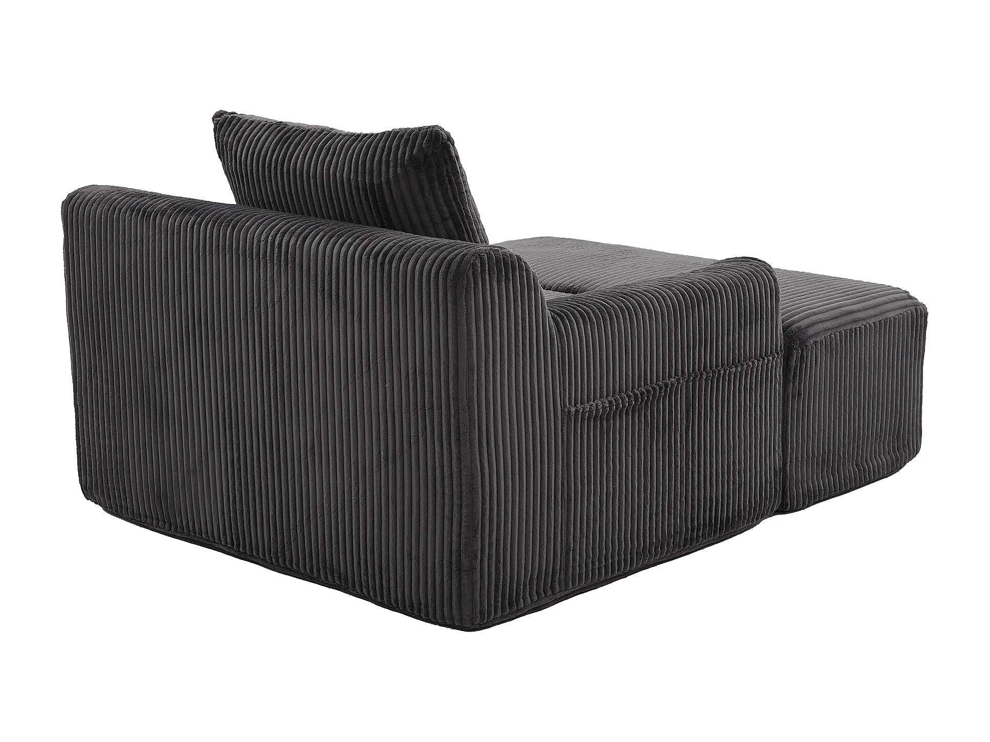 Fauteuil en tissu côtelé avec étrier, poches latérales et coussins - Gris foncé