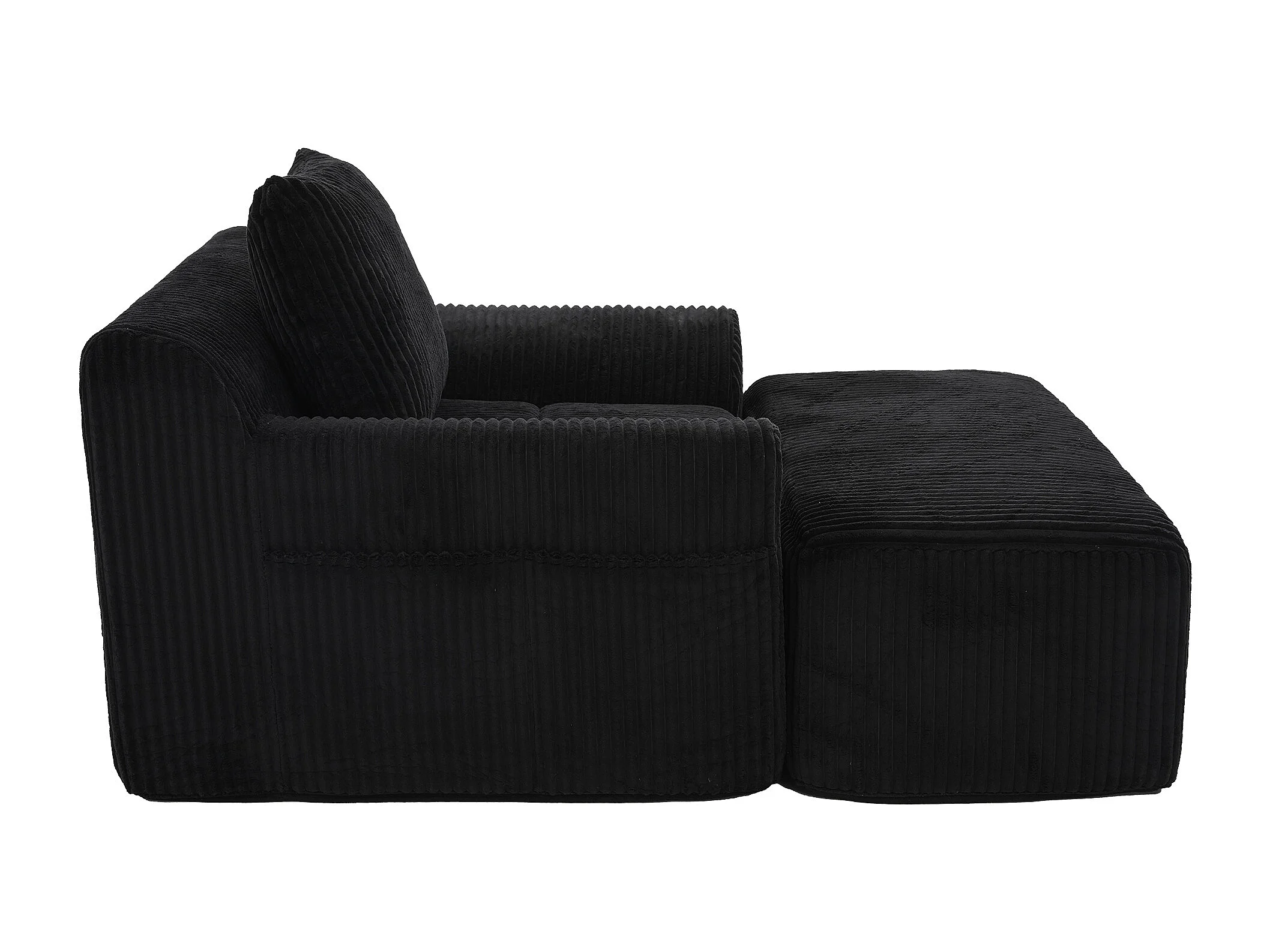 Fauteuil en tissu côtelé avec étrier, poches latérales et coussins - Noir