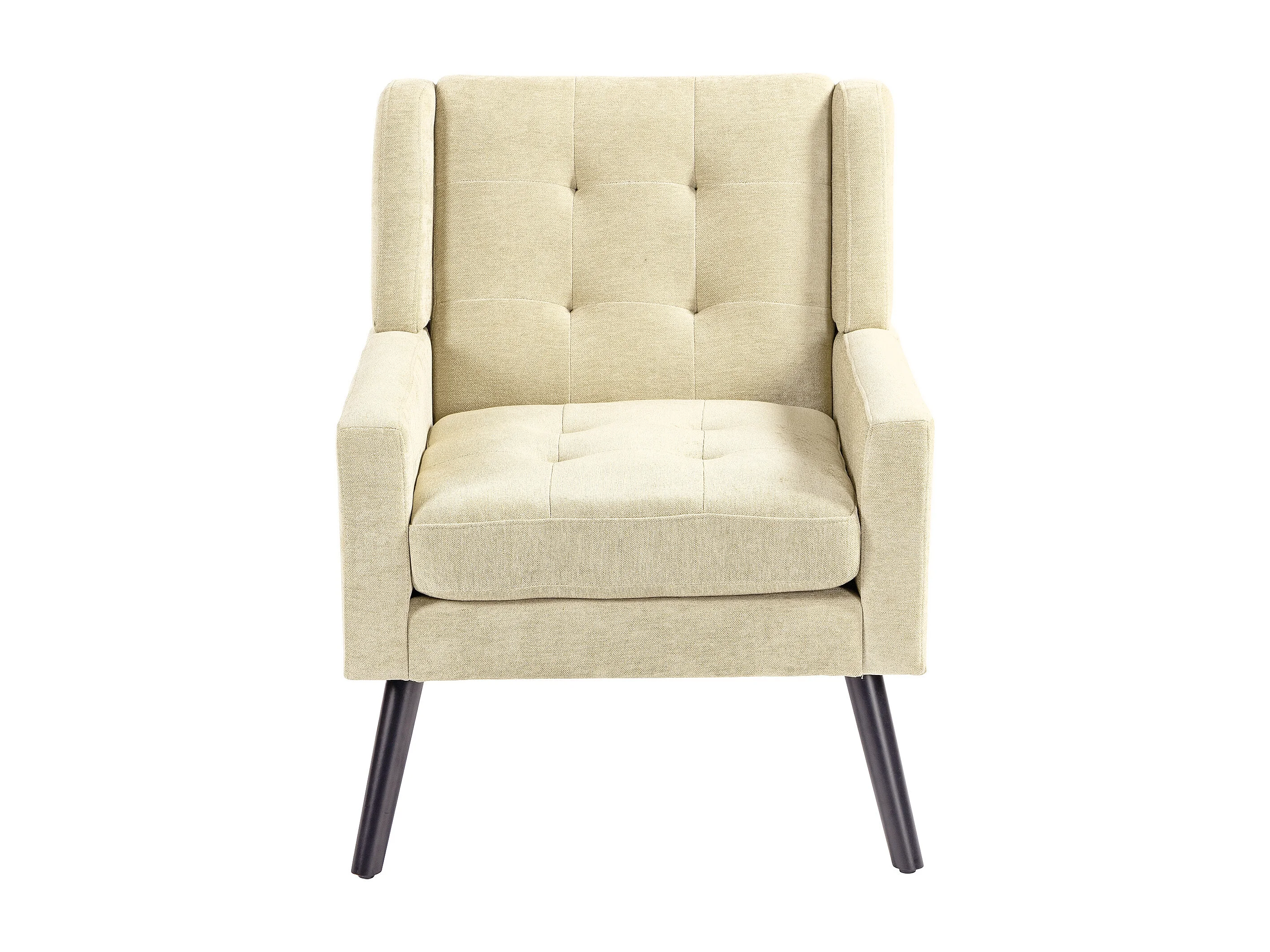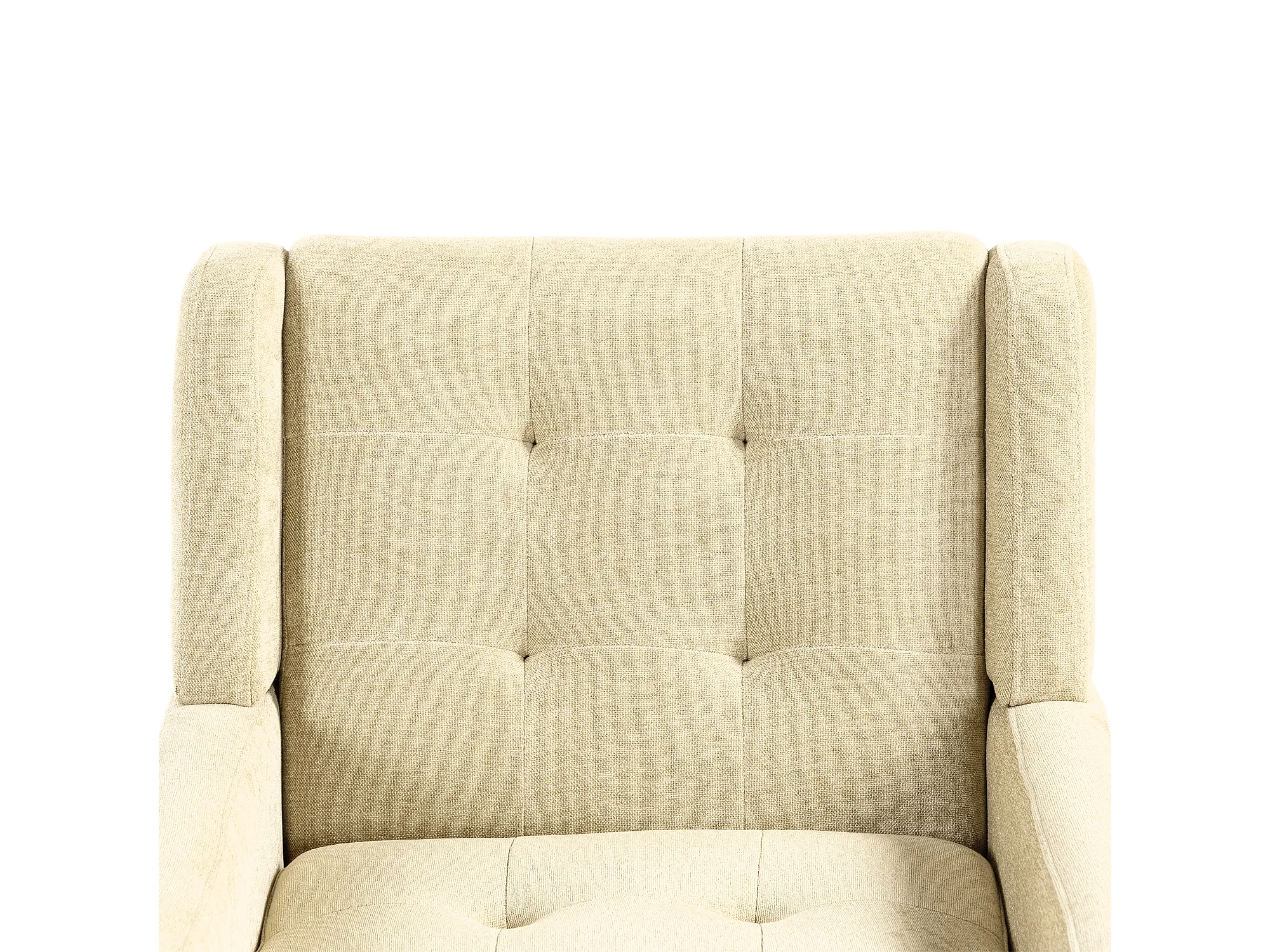 Fauteuil en tissu lin beige avec pieds en bois
