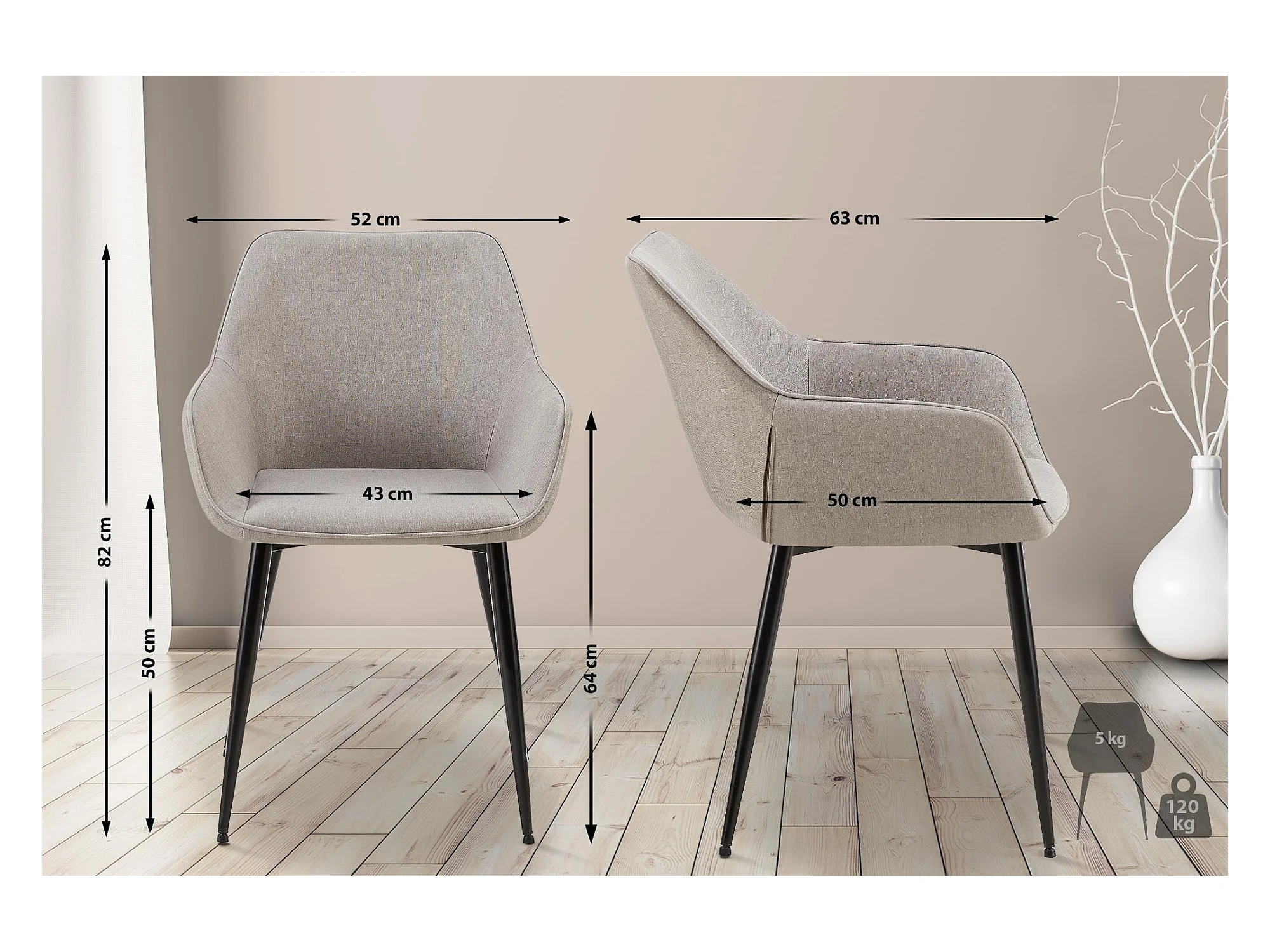 Chaise tissu en beige avec accoudoirs et pieds métal noir mat design VEERON