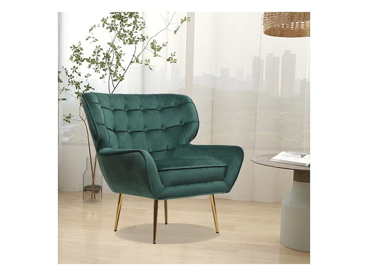 Fauteuil en velours "Austin" - 79 x 71 x 79.5 cm - Vert
