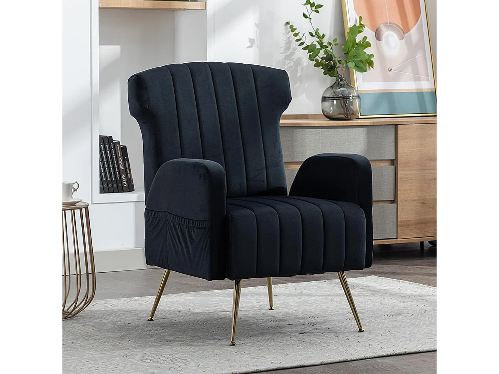 Fauteuil en velours avec pieds en métal doré rembourré chaise d'appoint canapé simple et décontracté avec dossier haut pour salon noir