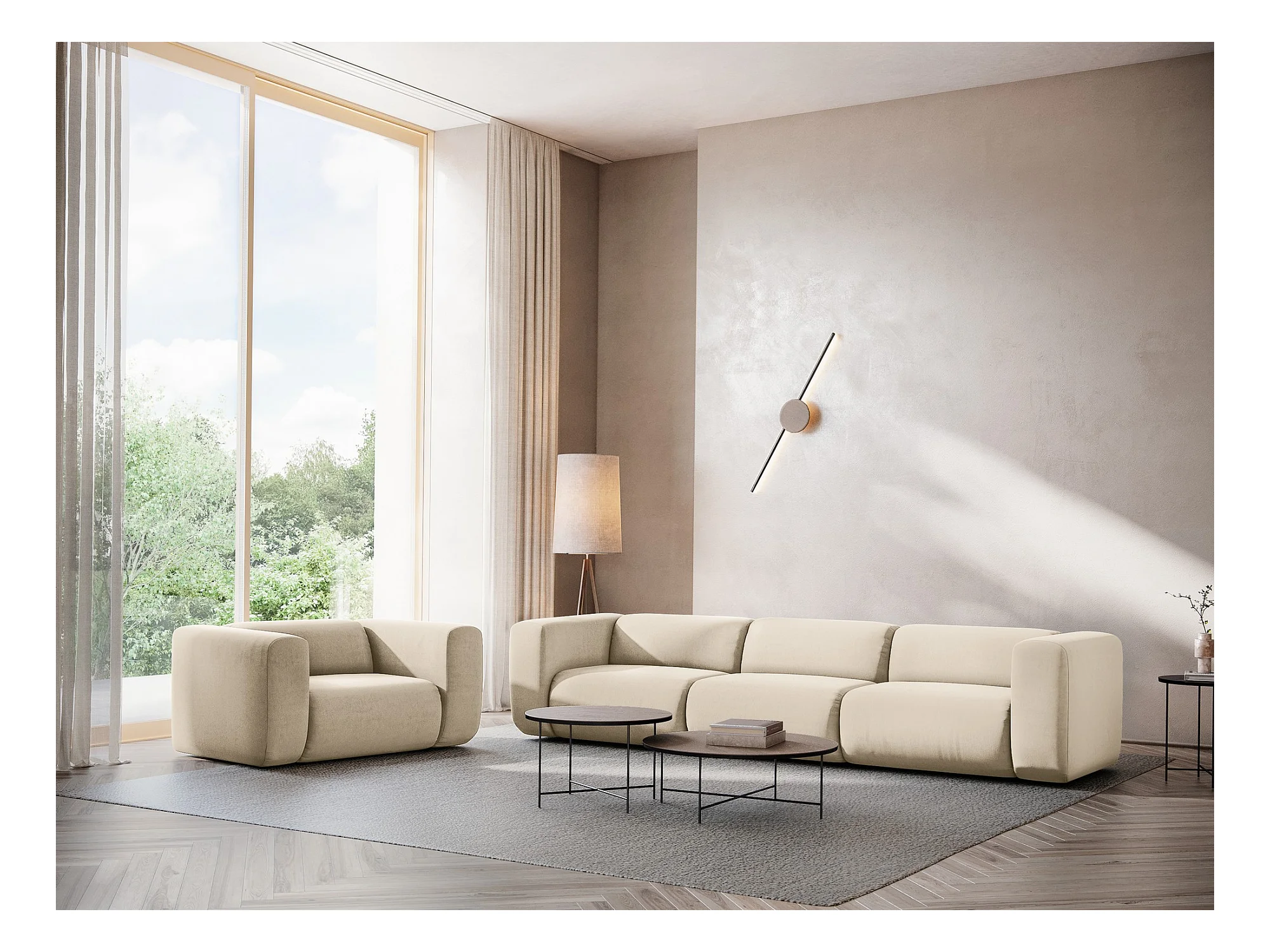 Fauteuil en velours - beige clair - EKAHI