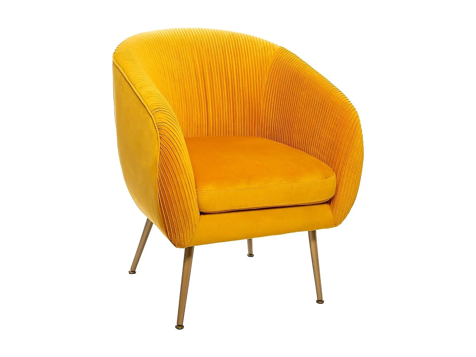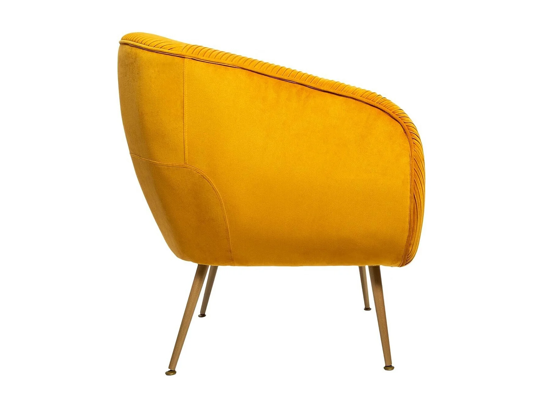 Fauteuil en velours coloris ocre plissé et pieds en métal doré - Longueur 74 x Profondeur 70 x Hauteur 78 cm