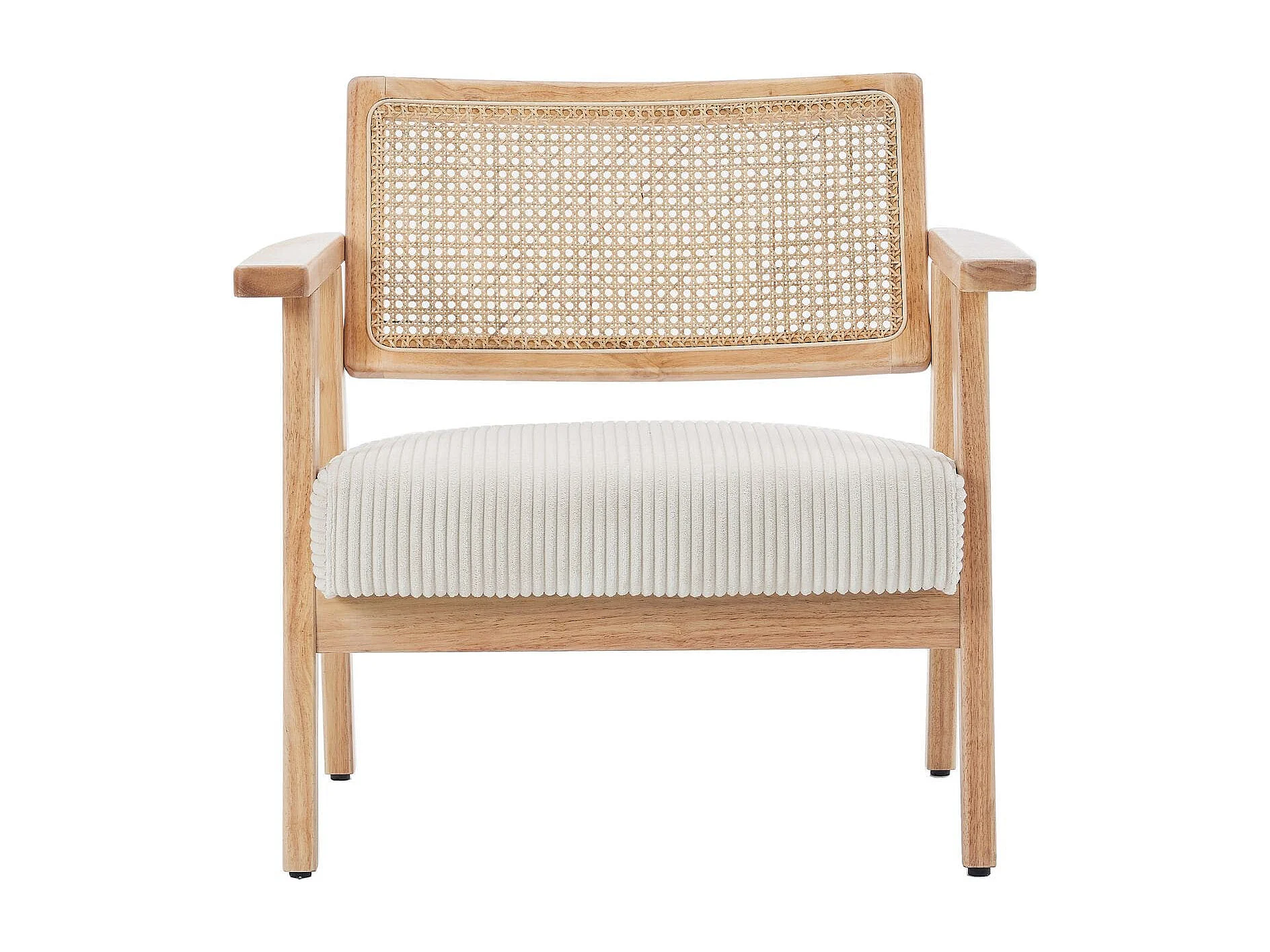 Fauteuil en velours côtelé beige et cannage naturel - Tim