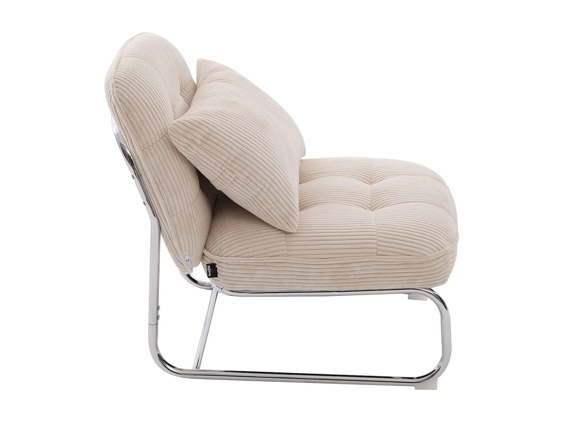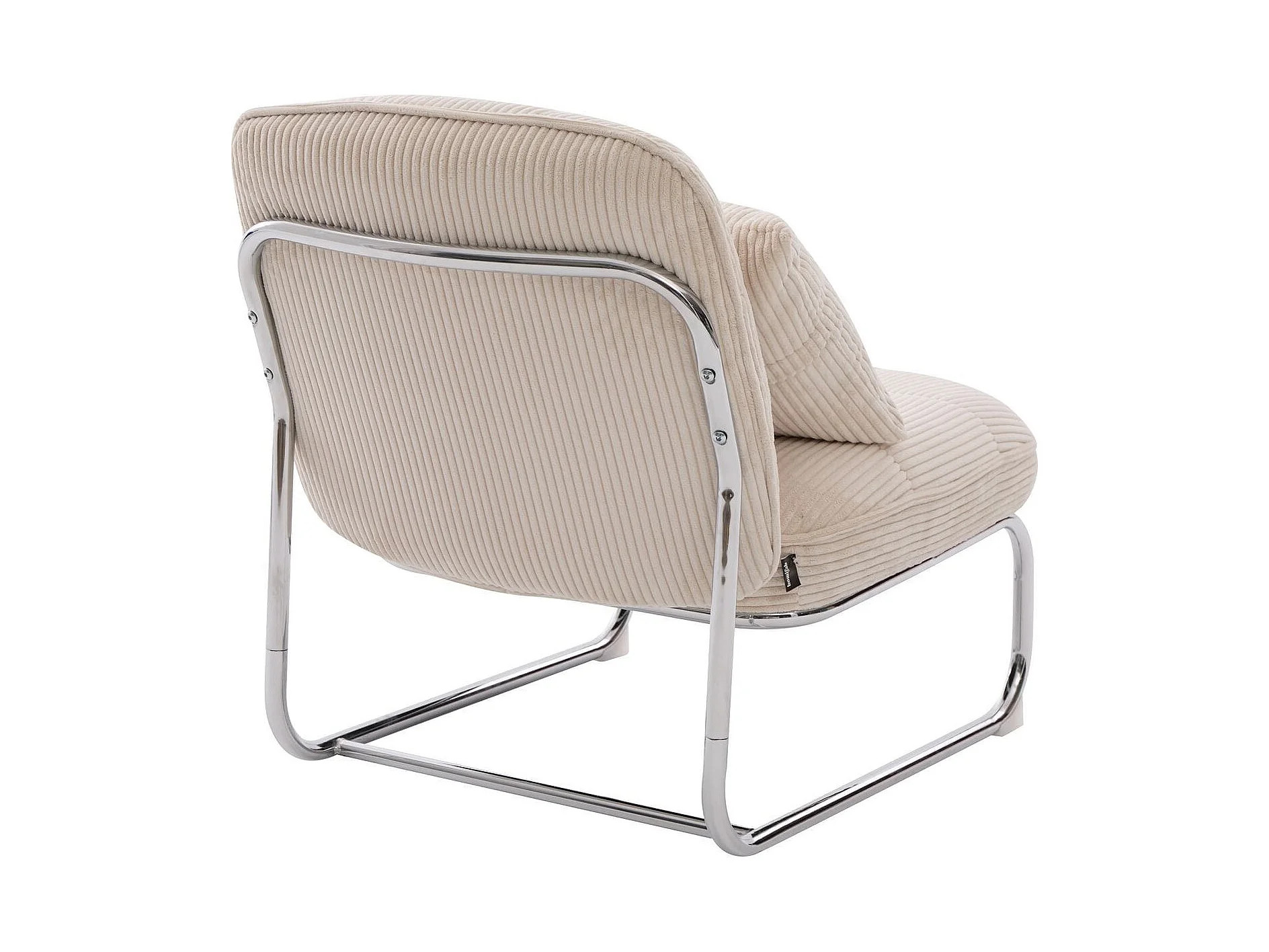 Fauteuil en velours côtelé beige, piètement chromé - Marvin