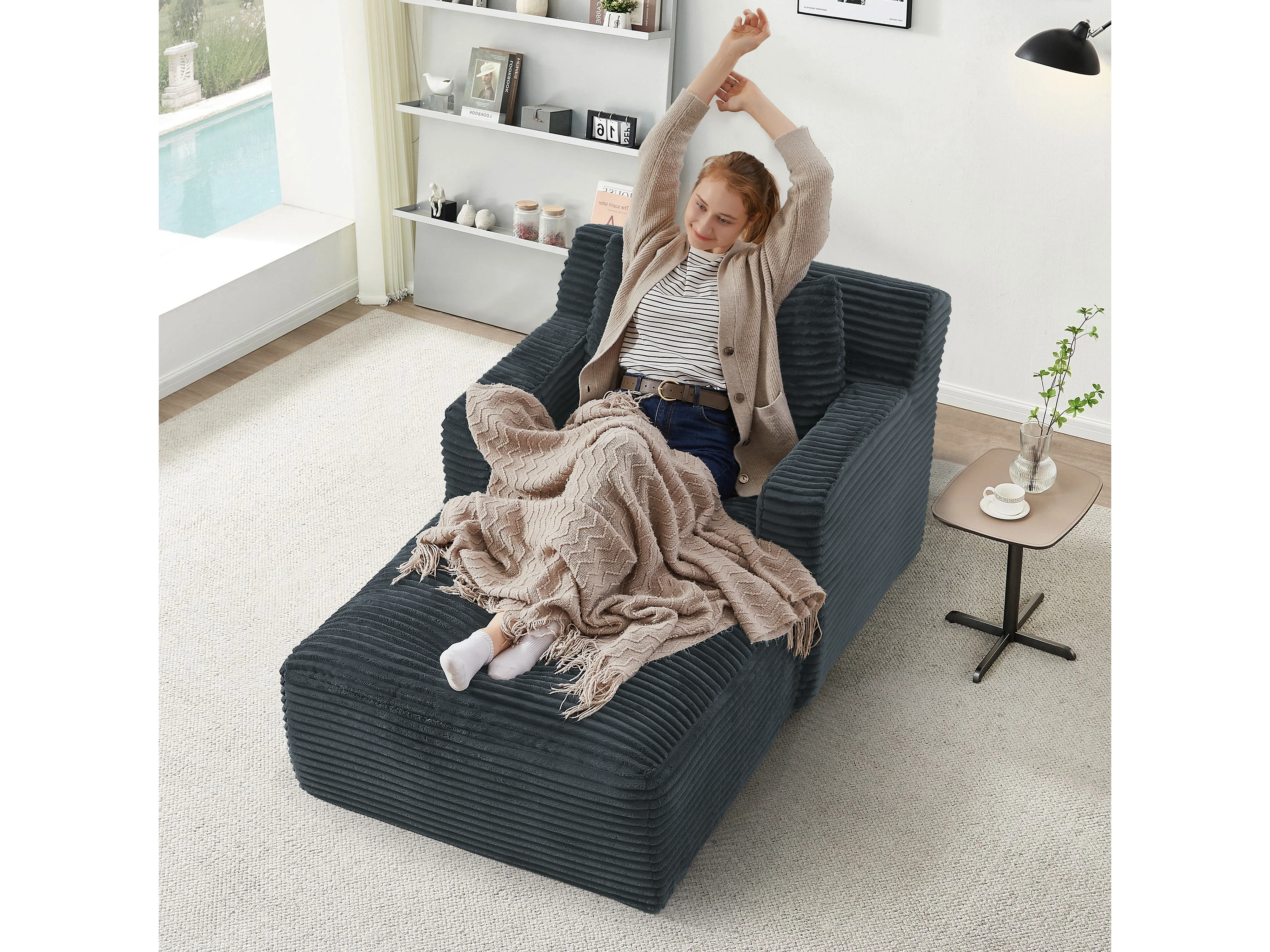 Fauteuil en velours côtelé - Canapé-lit gris foncé- Aucun assemblage requis