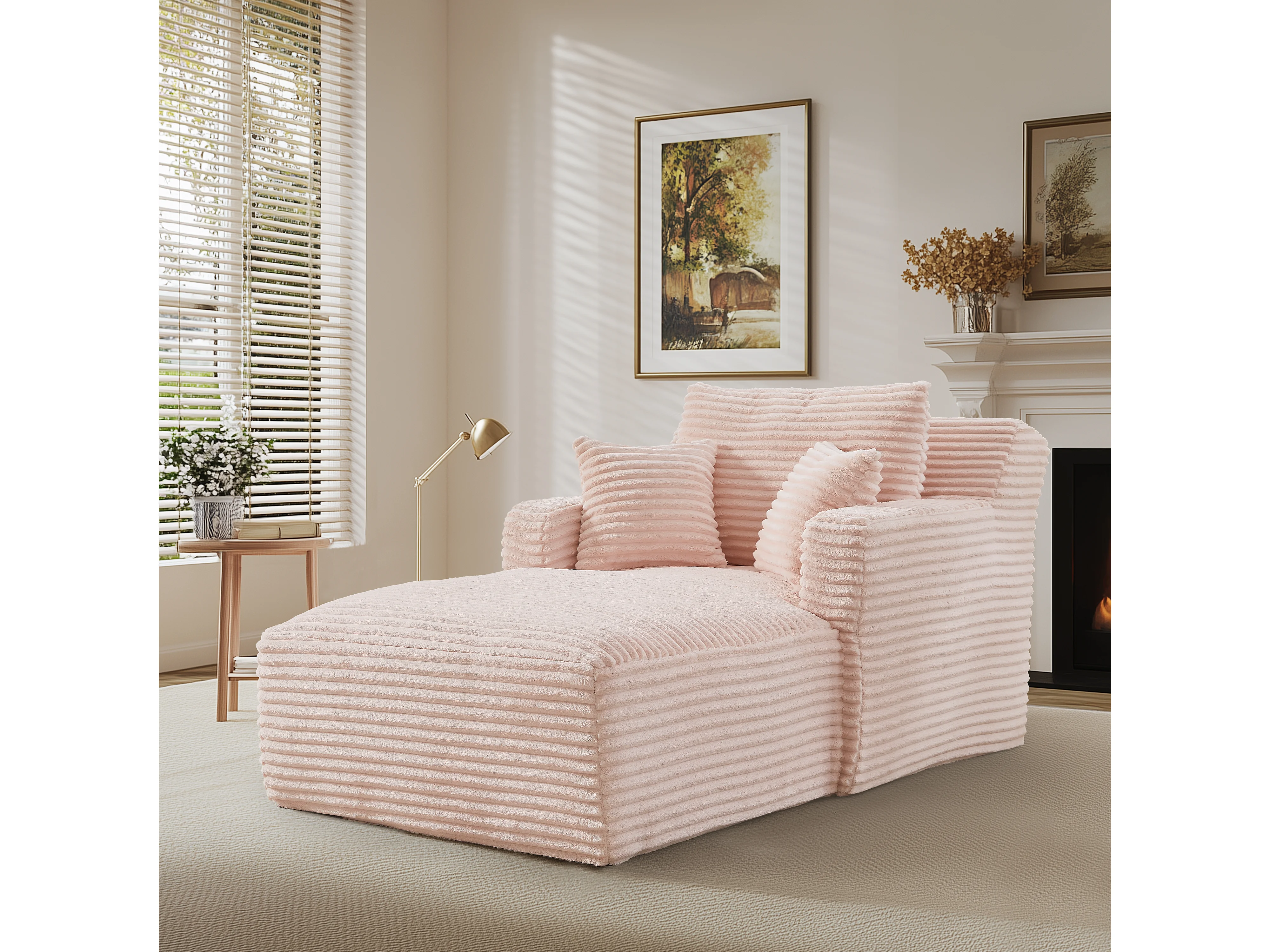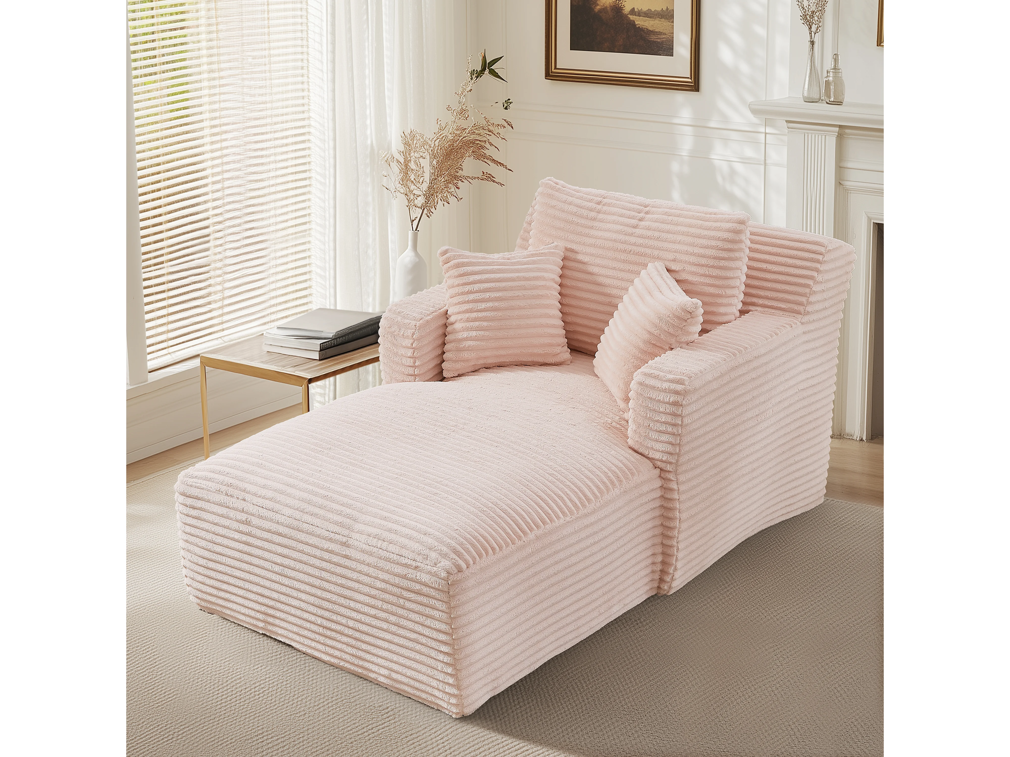 Fauteuil en velours côtelé - Canapé-lit rose- Aucun assemblage requis