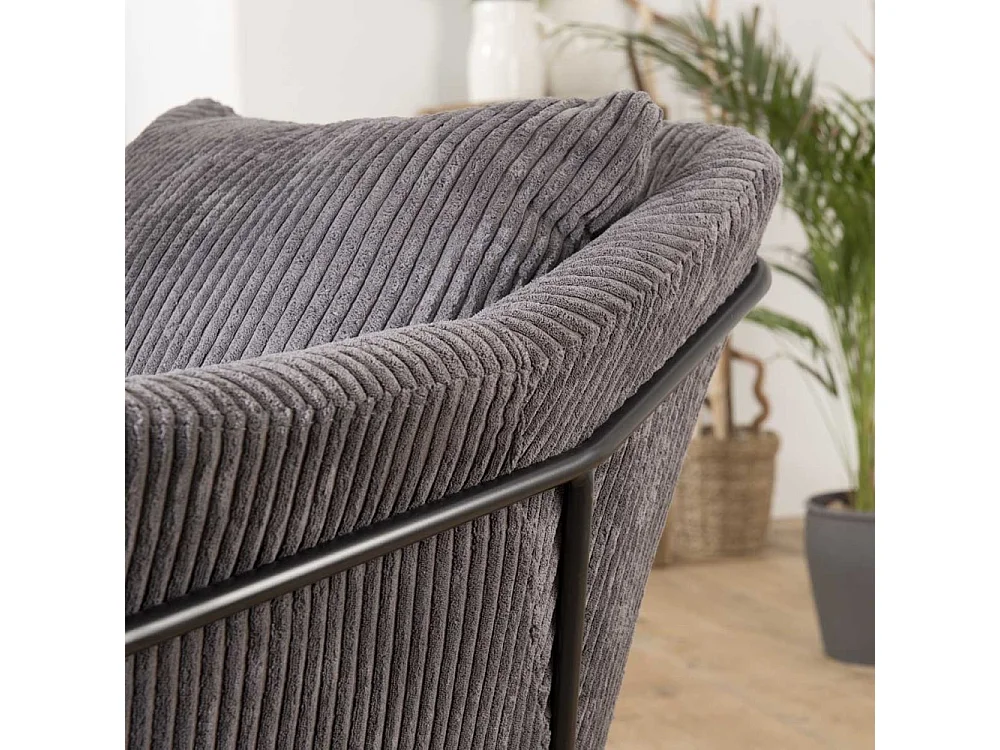 AGATHE - Fauteuil pieds évasés métal et tissu velours cotelé gris