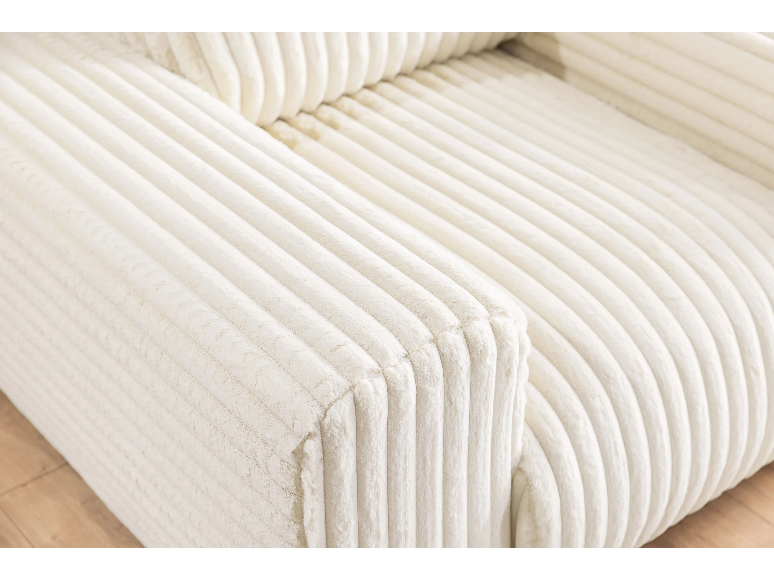 Fauteuil en velours côtelé pelucheux beige clair offrant un agréable confort d’assise MOLLIS