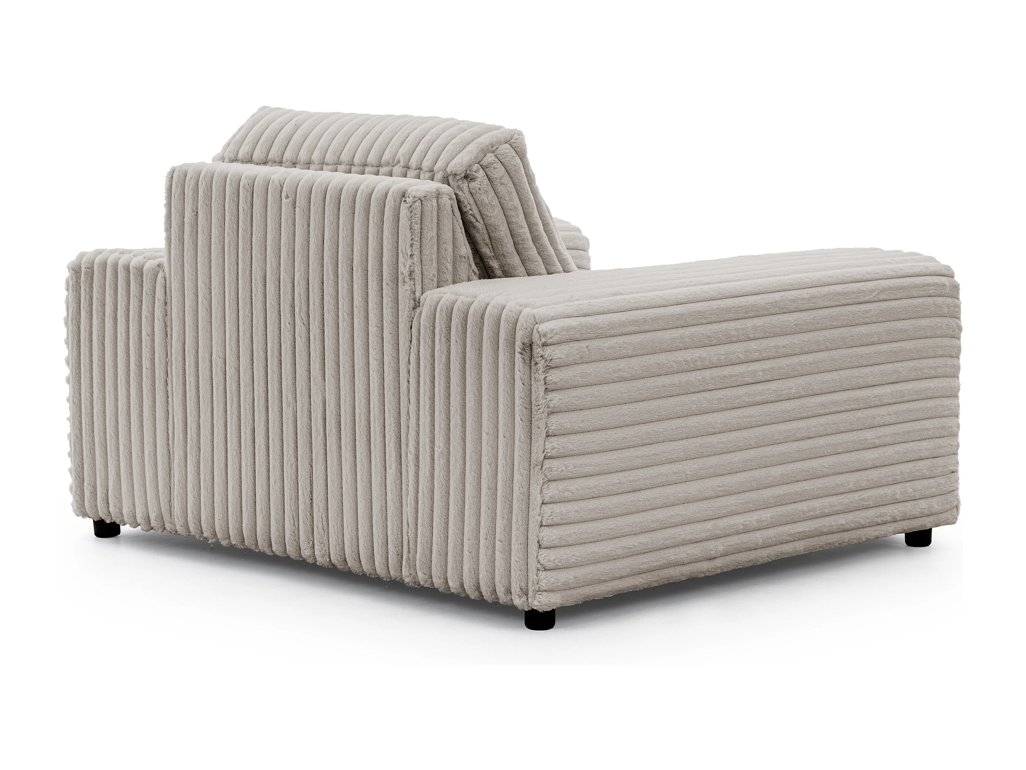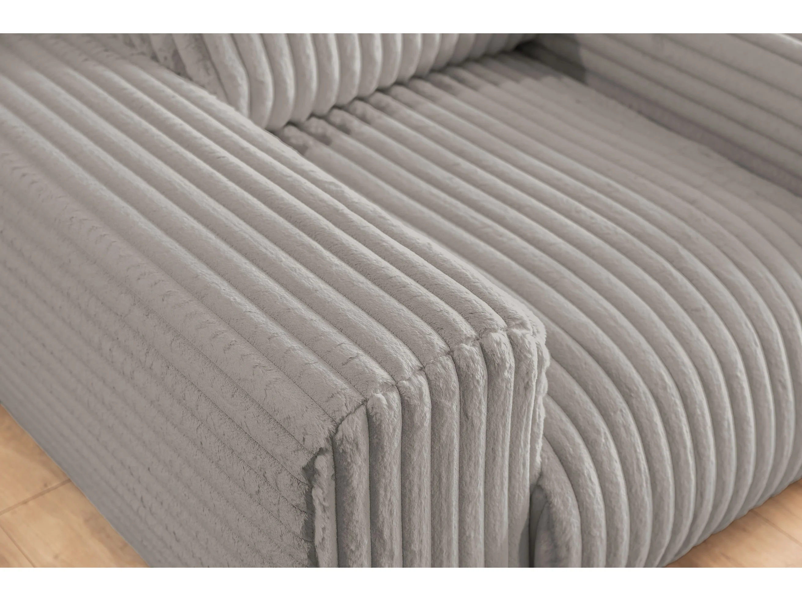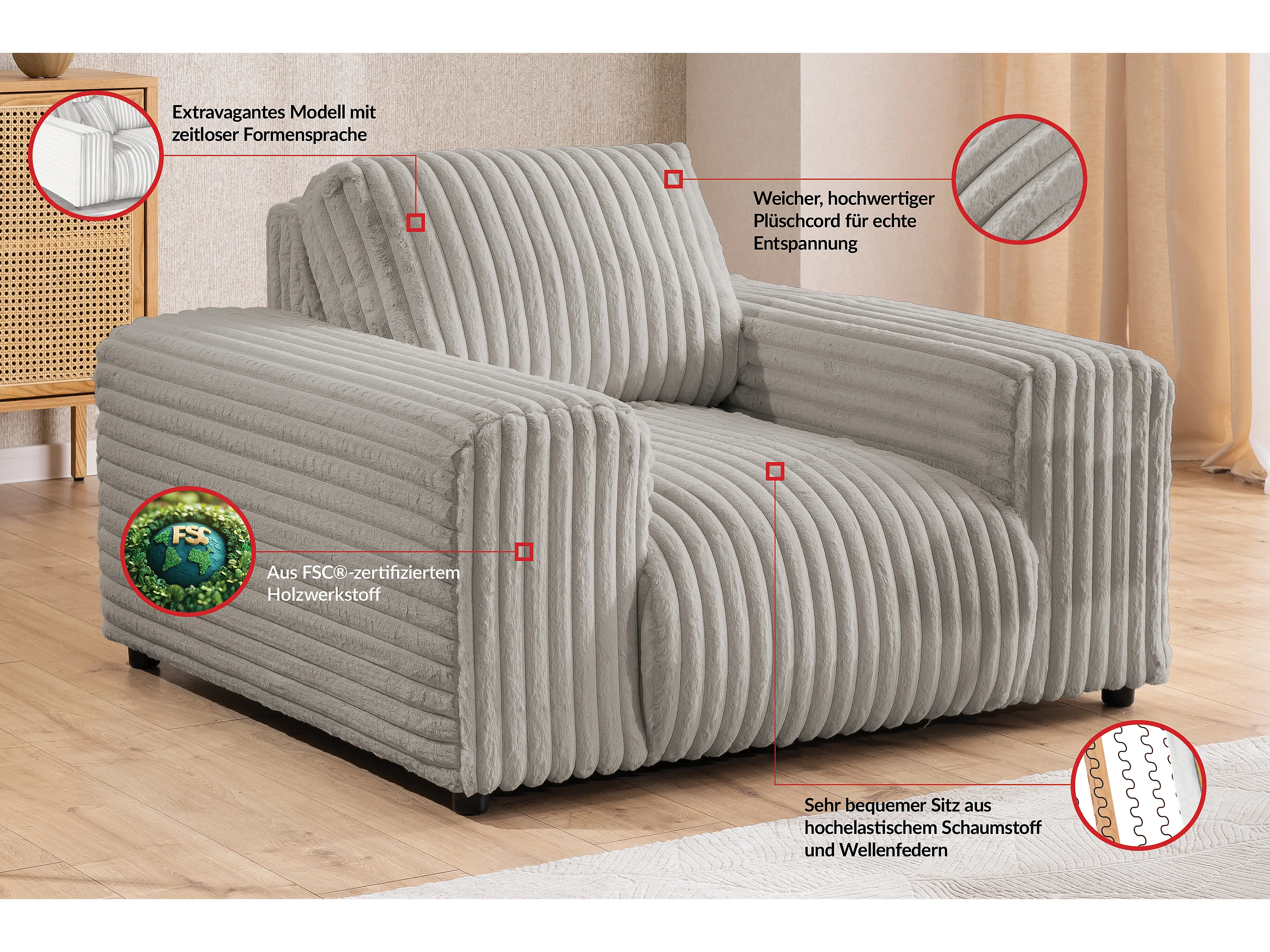 Fauteuil en velours côtelé pelucheux gris clair offrant un agréable confort d’assise MOLLIS