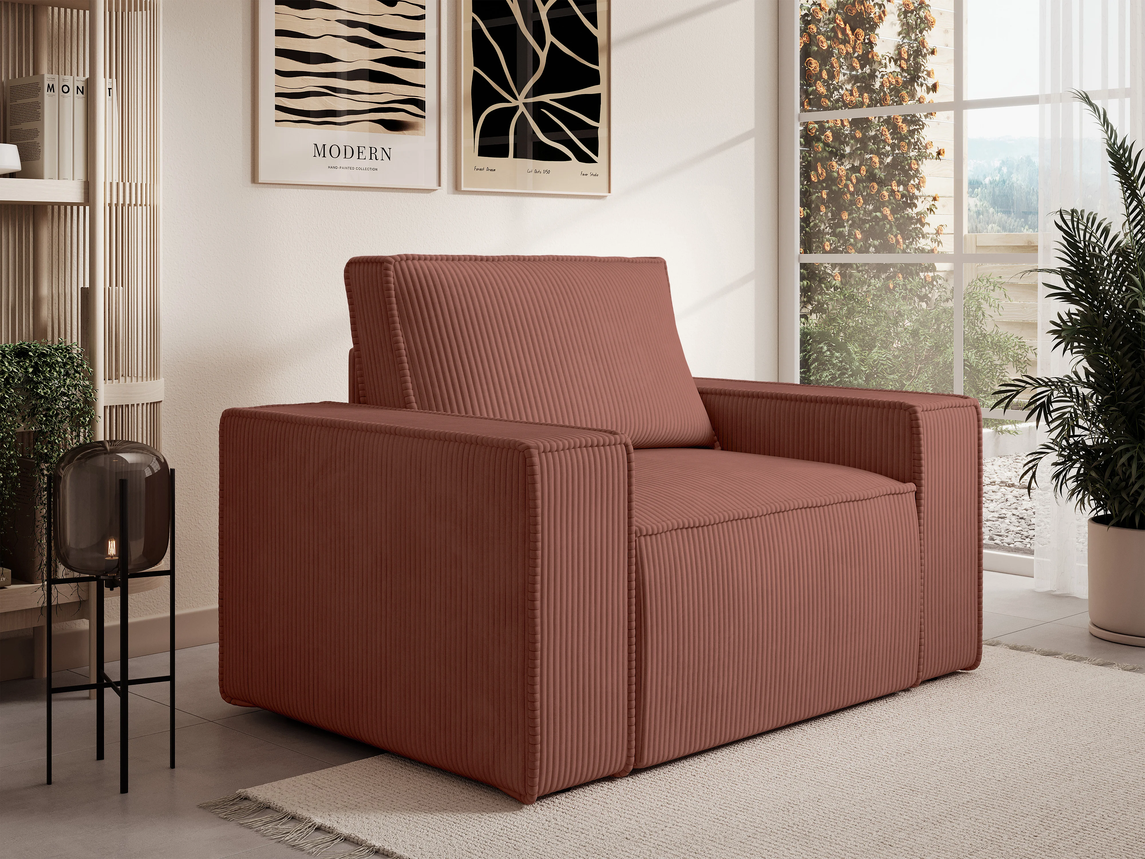 Fauteuil en velours côtelé rose AMELIA