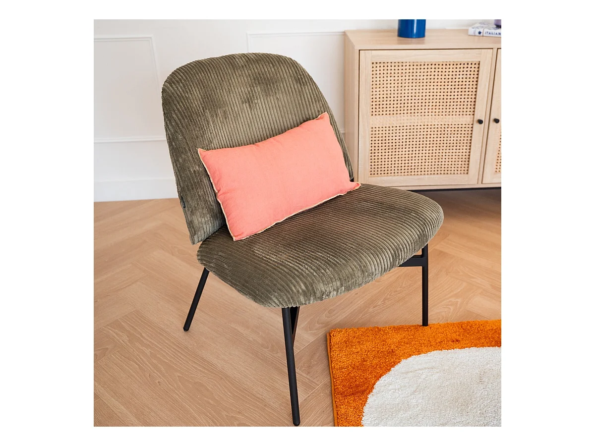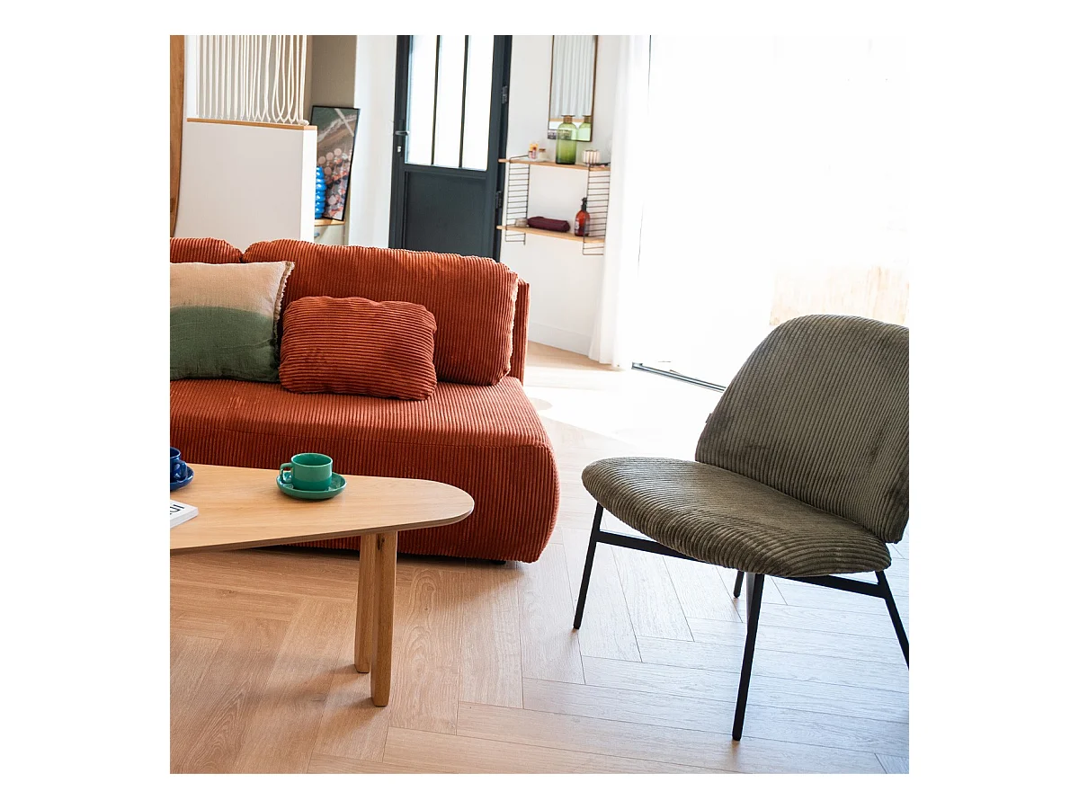 Fauteuil en velours côtelé vert kaki - Petra