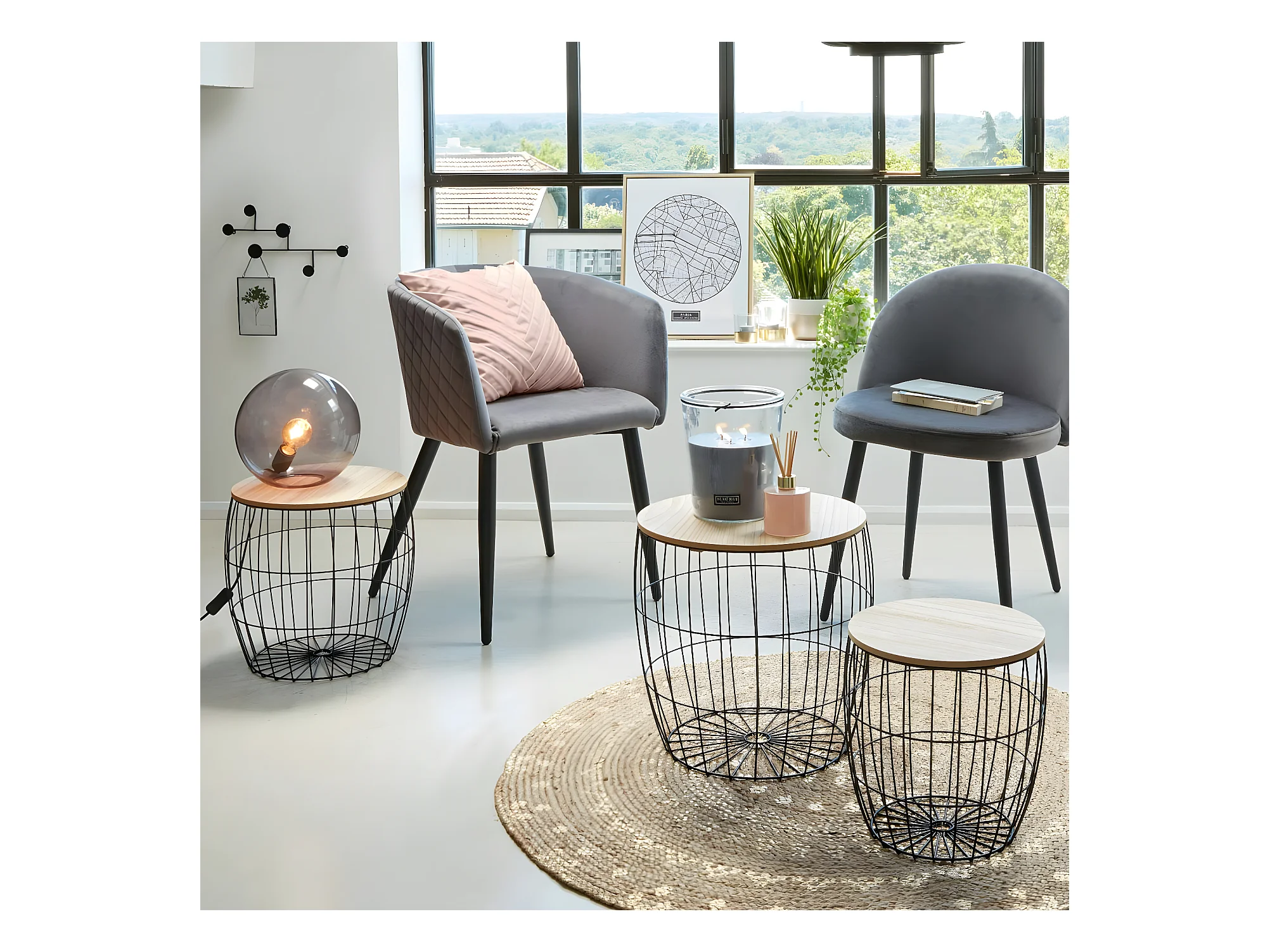 Fauteuil 1 place en tissu velours catégorie luxe, gris foncé, LAZINO