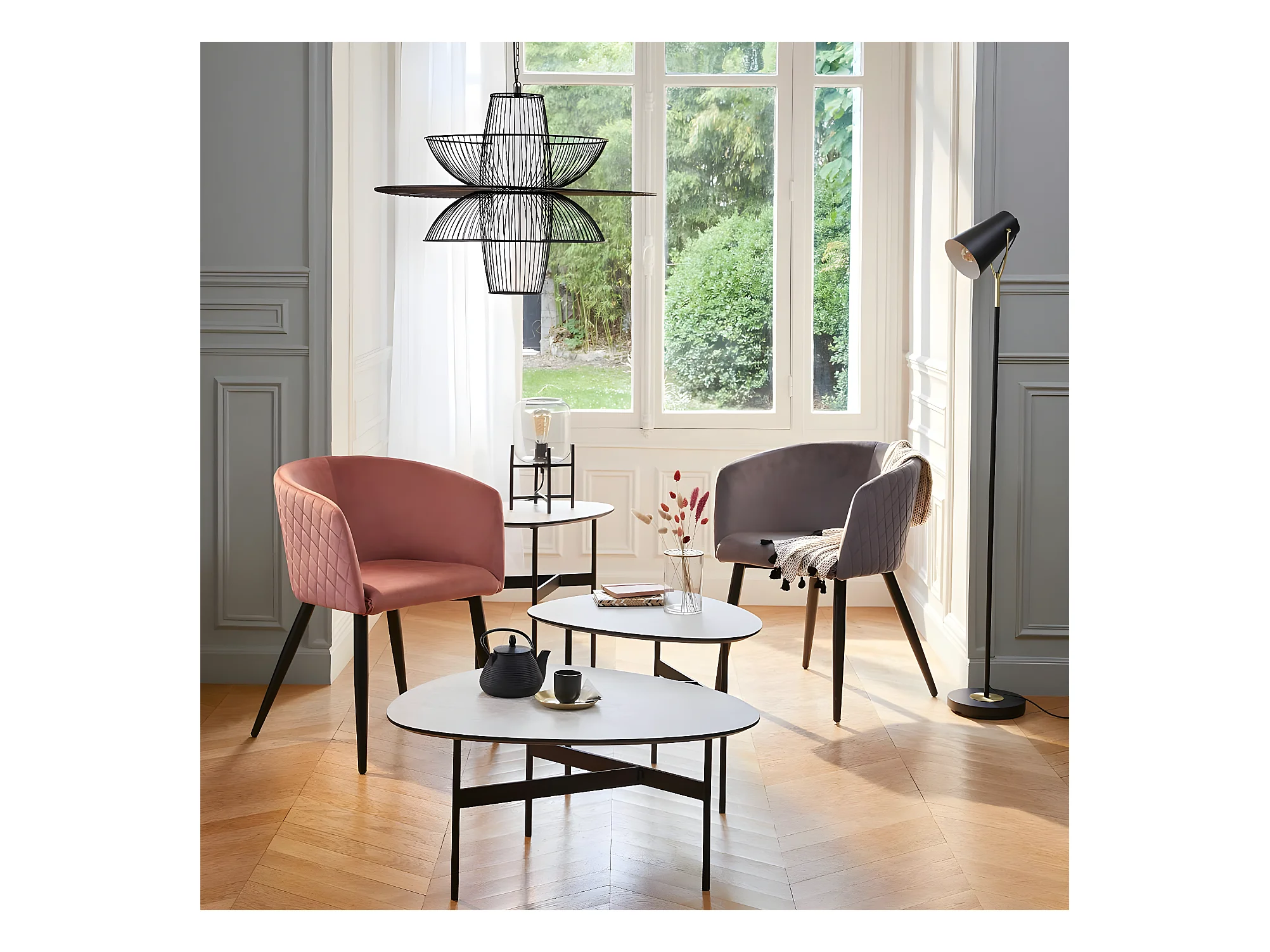 Bout de canapé design en céramique blanche marbrée OTTAWA