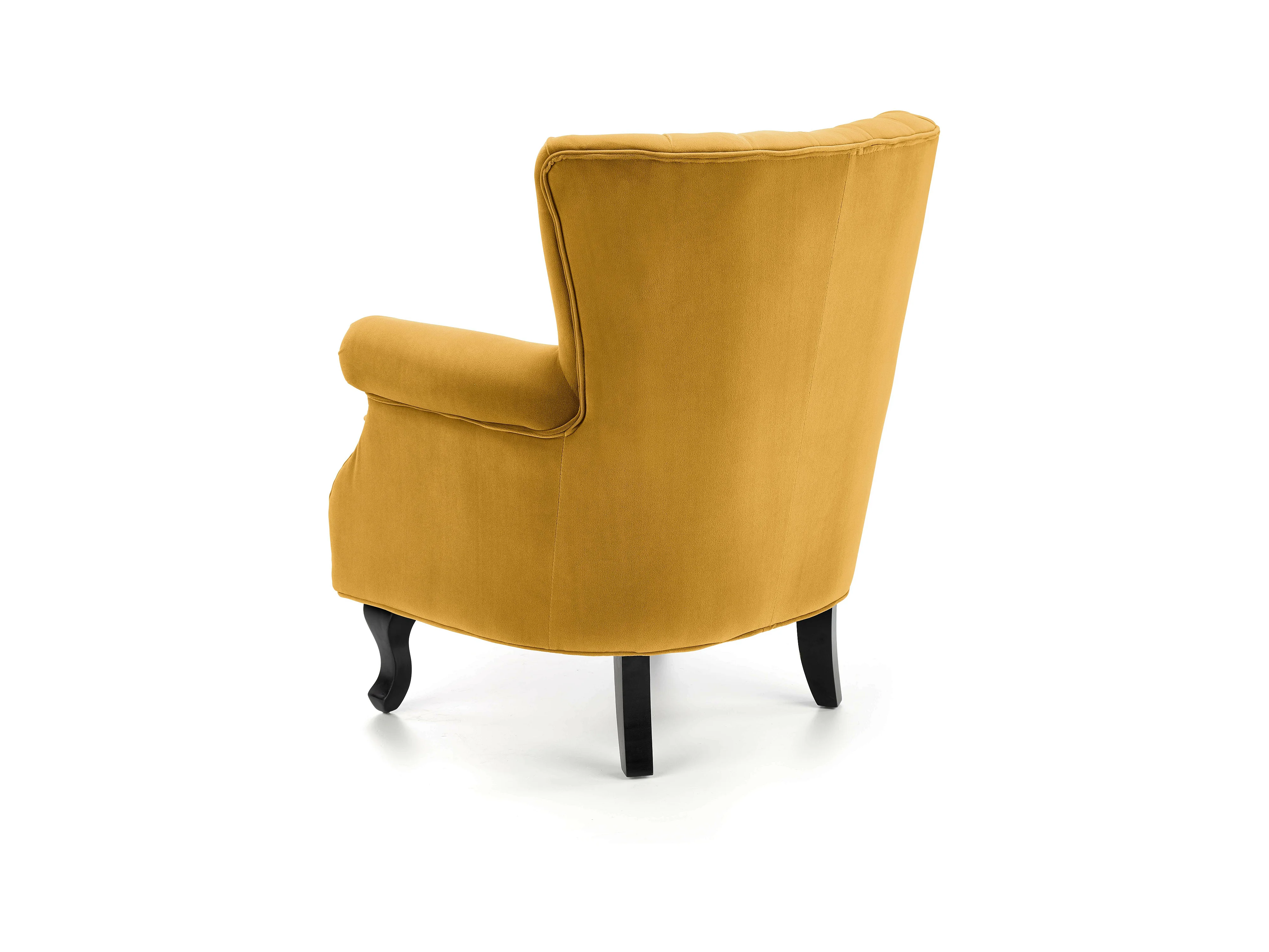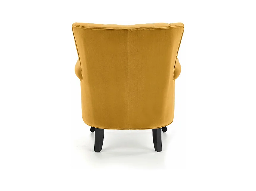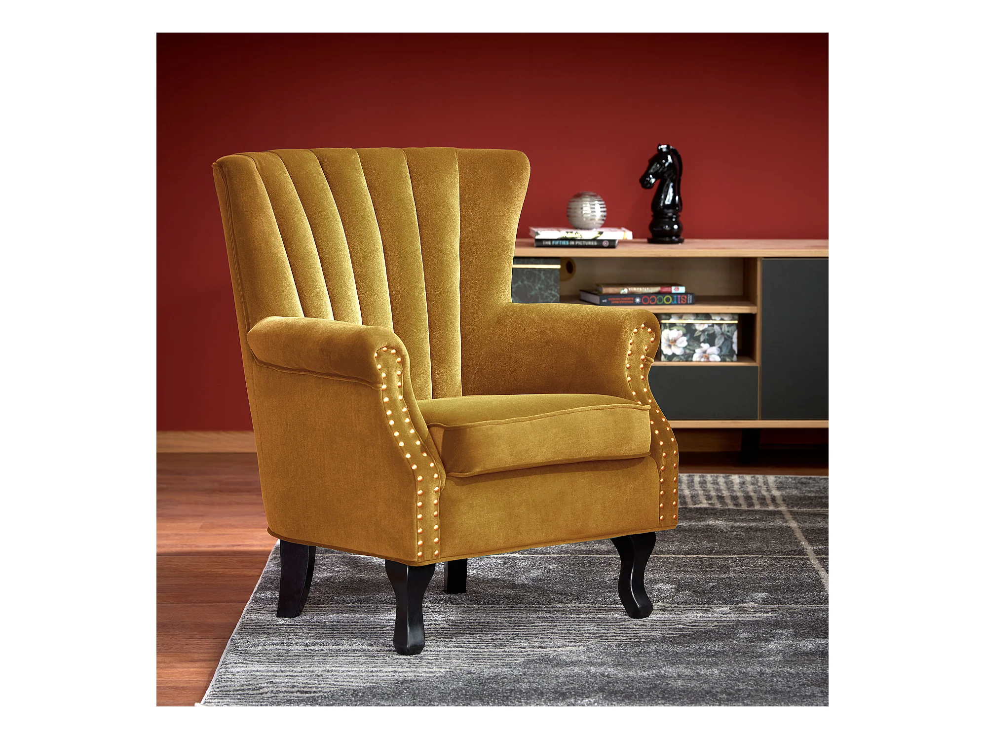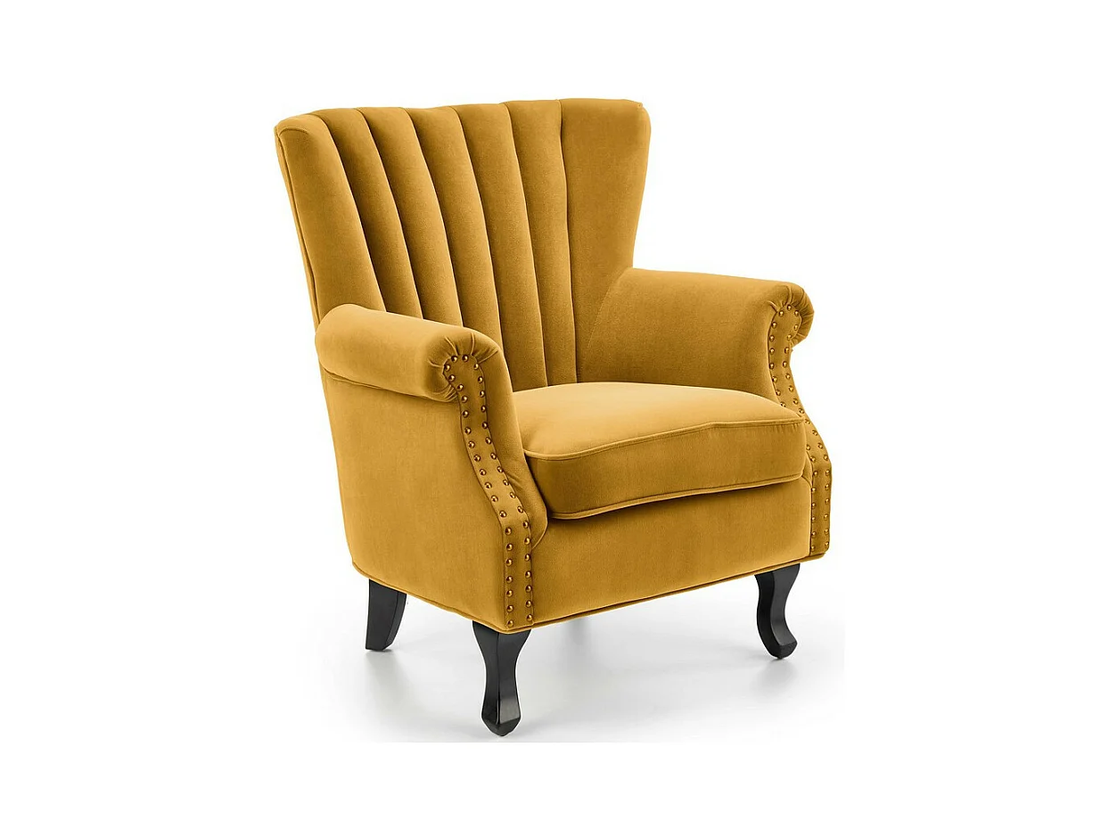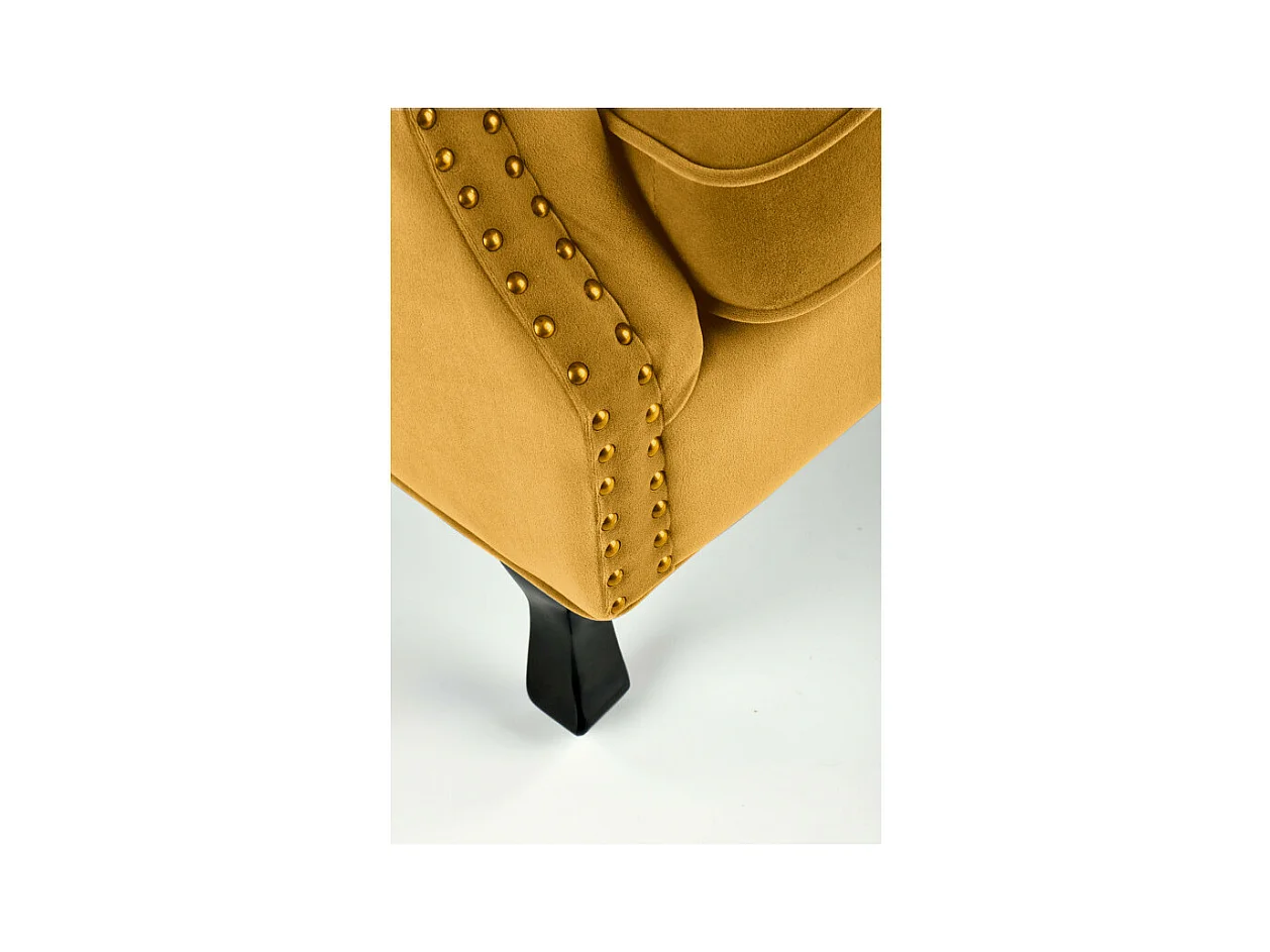 Fauteuil en velours jaune avec accoudoirs cloutés et pieds en bois massif MEDICIS