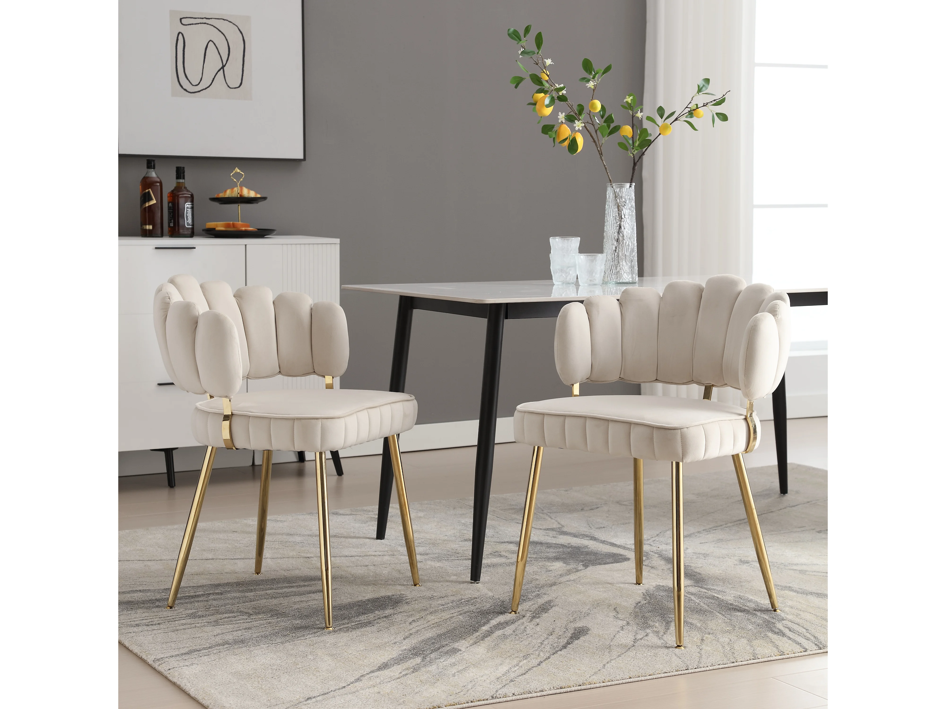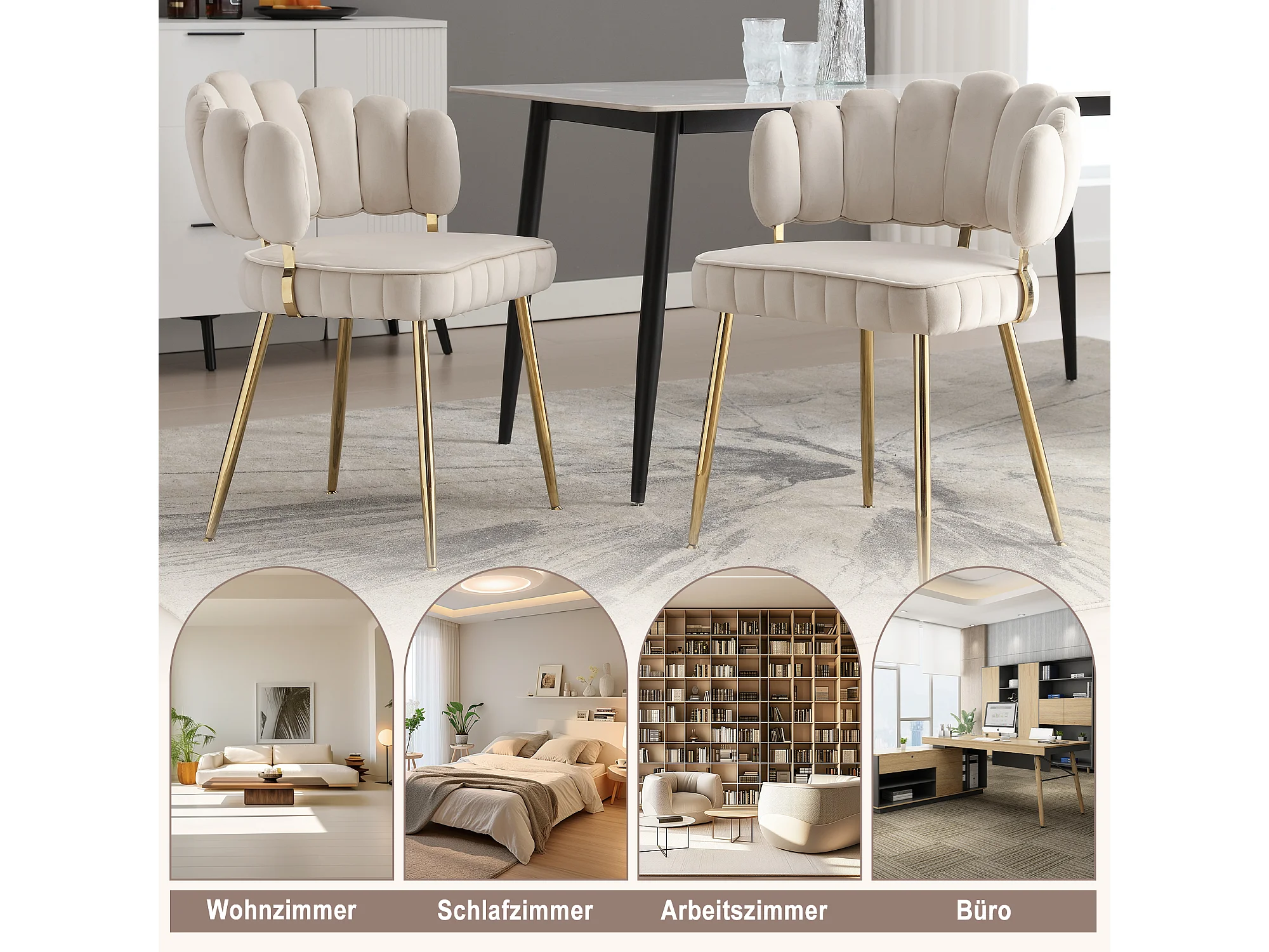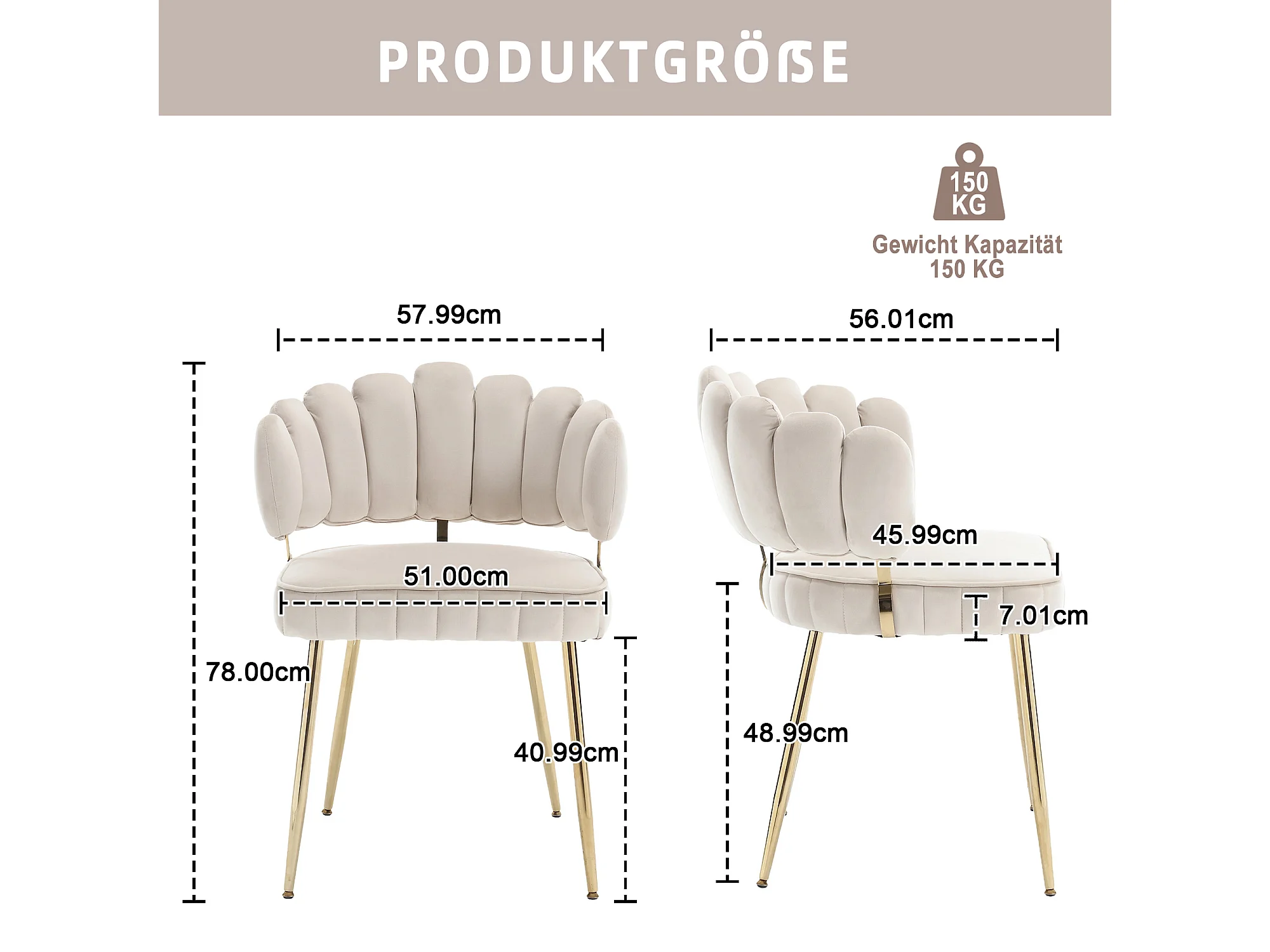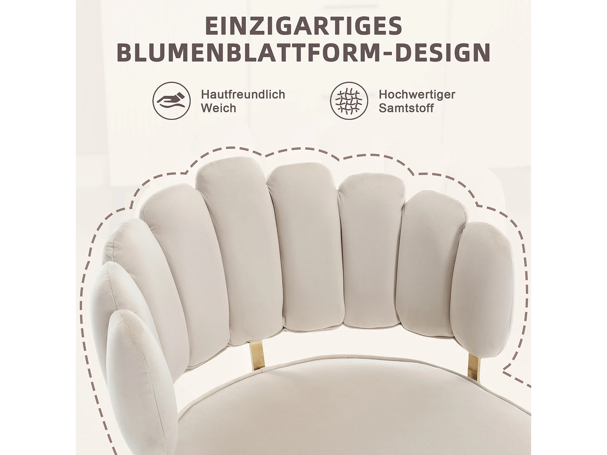 Fauteuil en velours moderne avec dossier fleuri et pieds métalliques, ivoire (58x56x78cm)