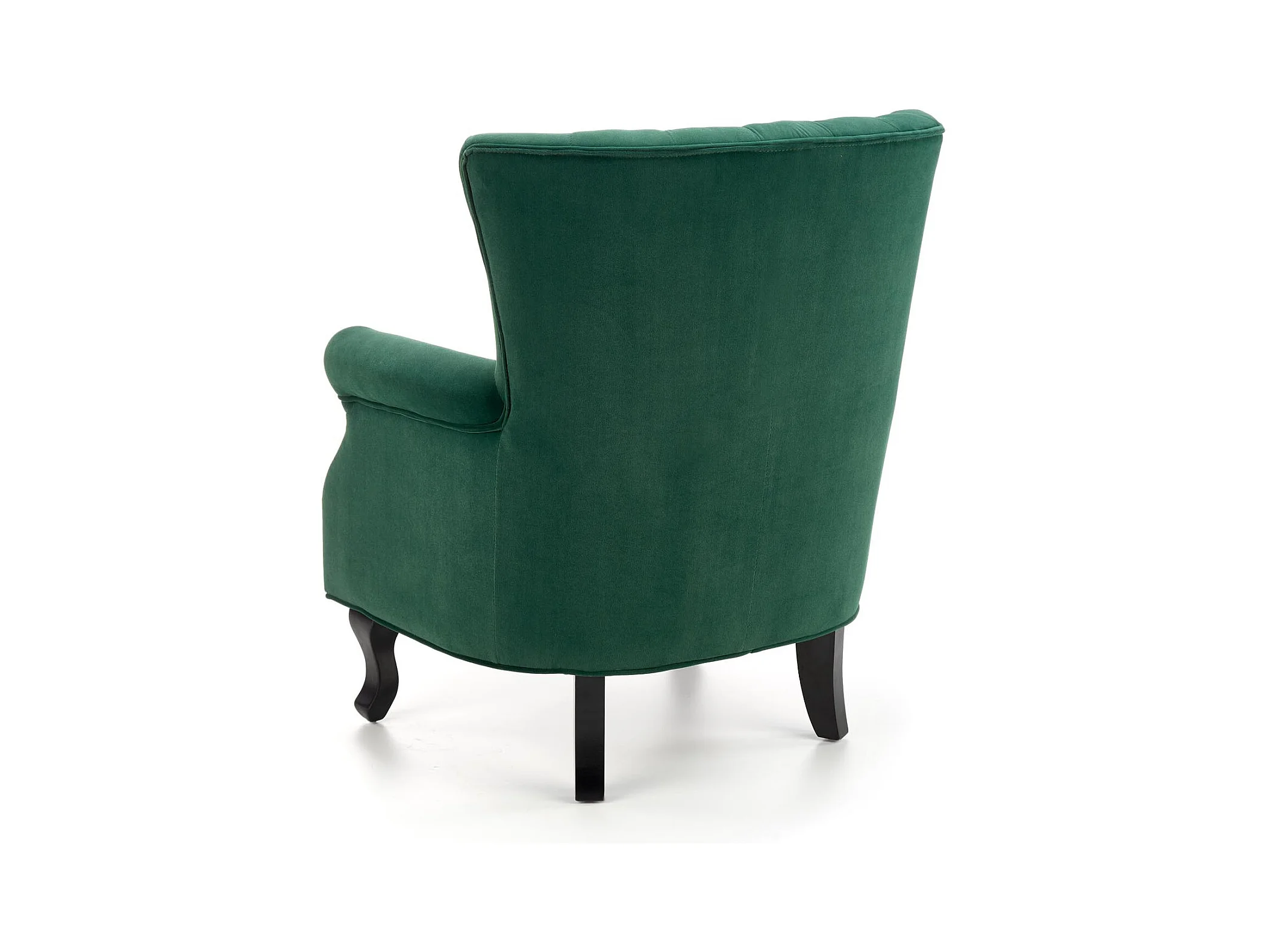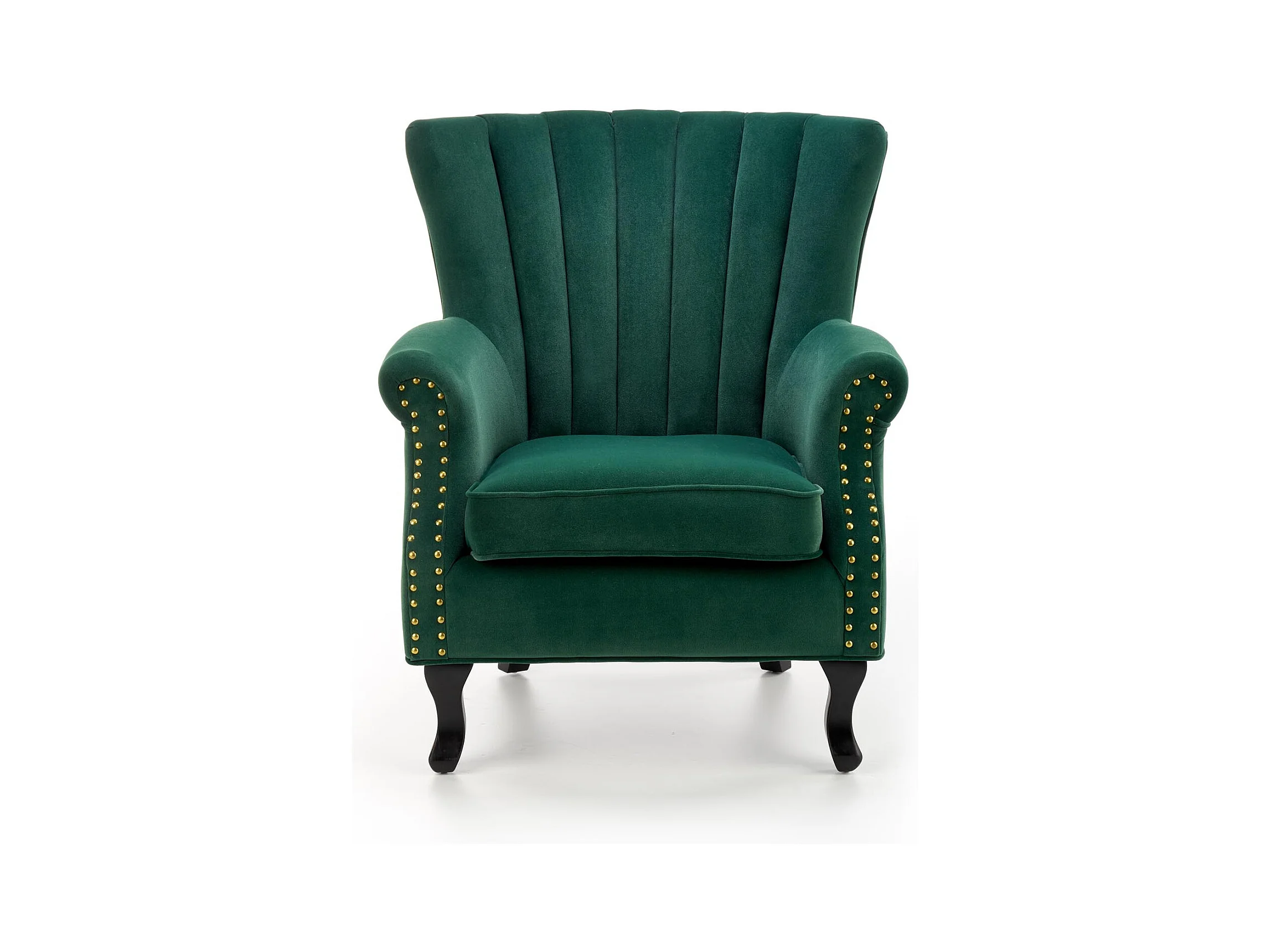 Fauteuil en velours vert avec accoudoirs cloutés et pieds en bois massif MEDICIS