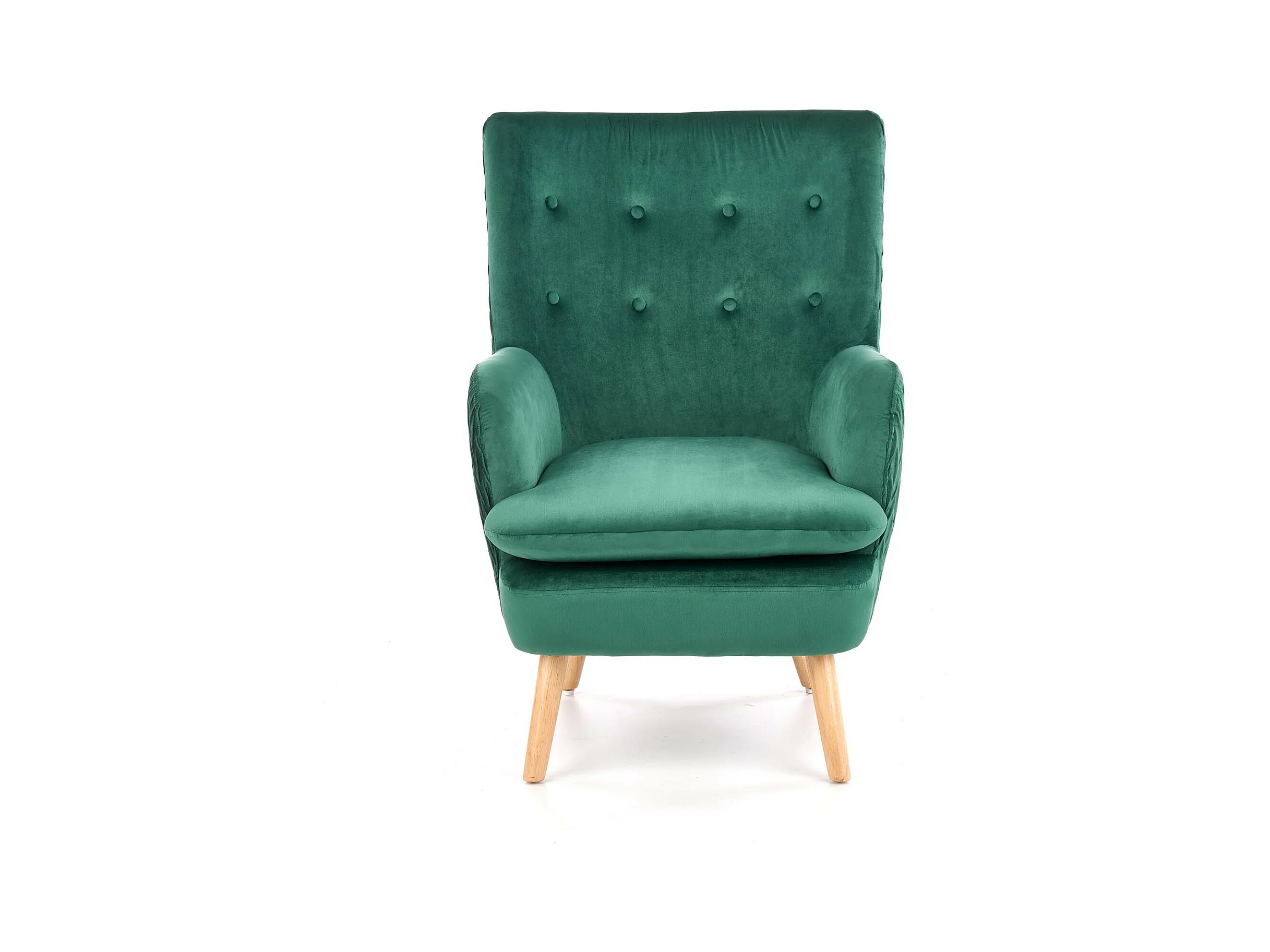 Fauteuil en velours vert avec pieds en bois massif Coventry