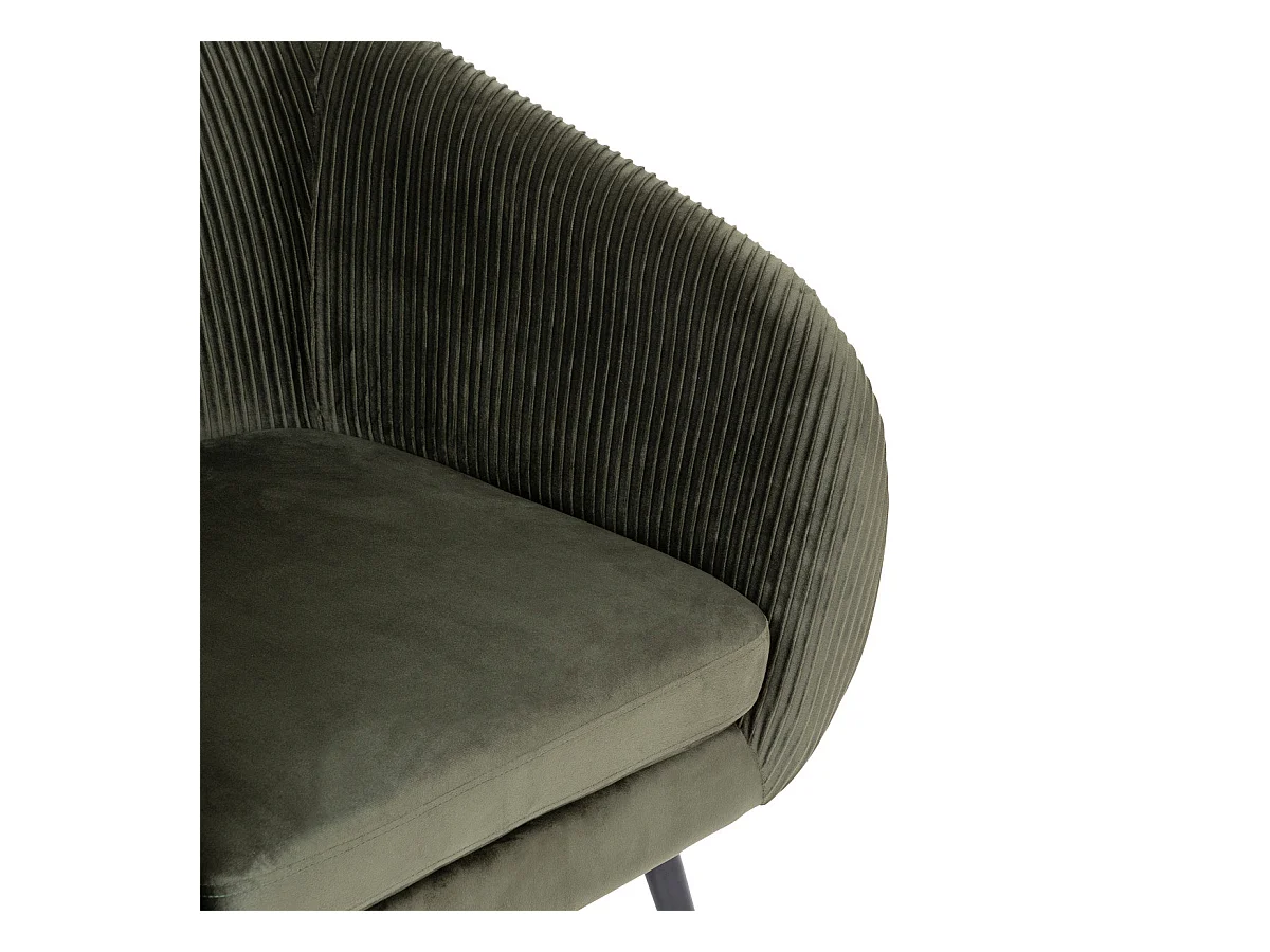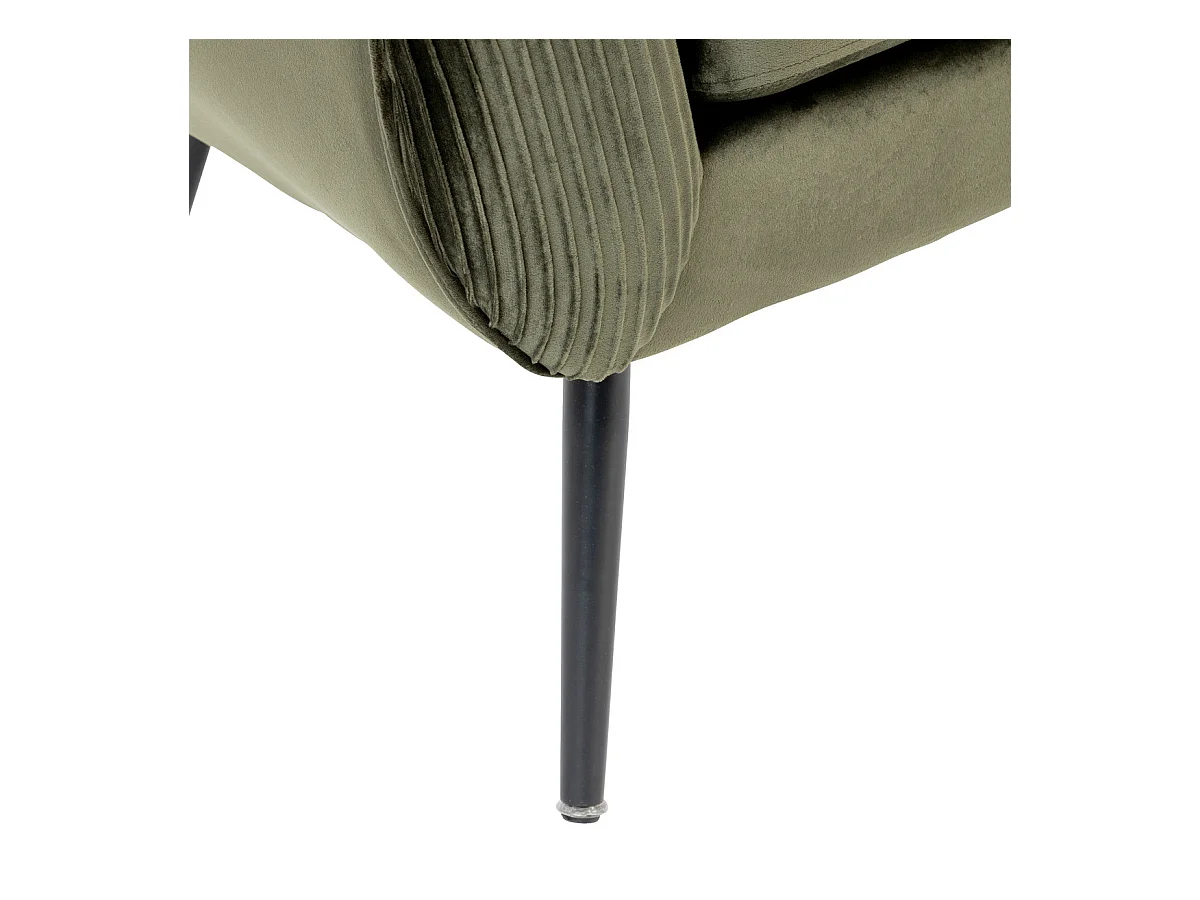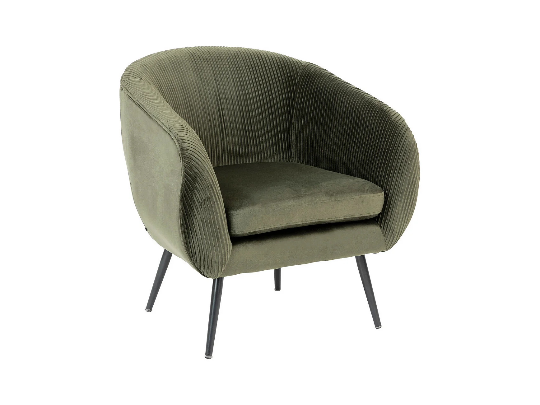 Fauteuil en Velours Vert Kaki plissé et pieds en métal noir