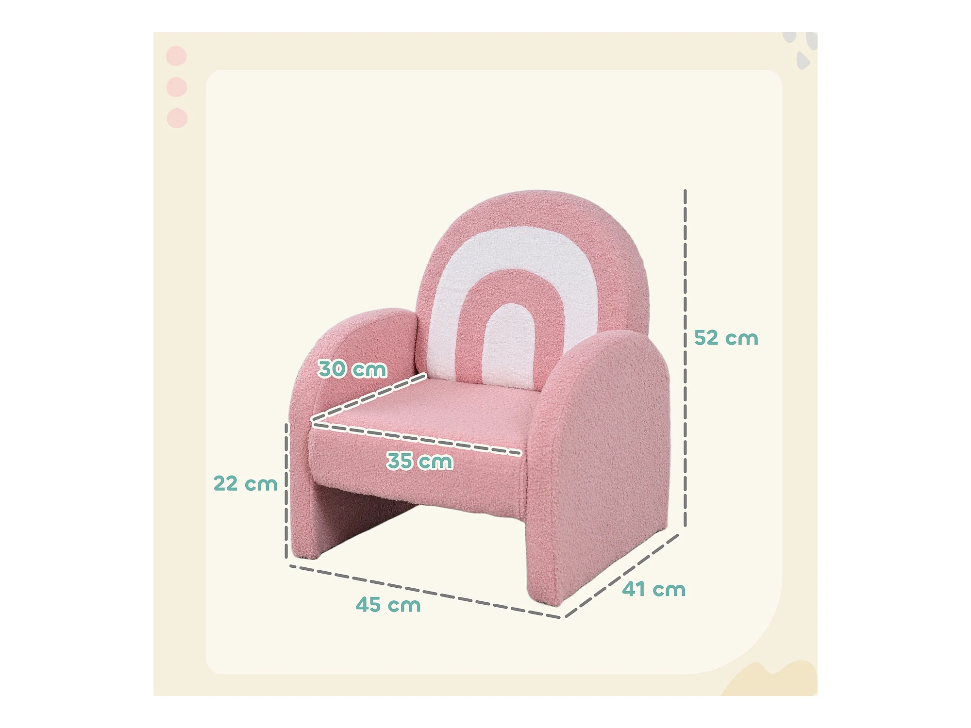 Fauteuil enfant design motif arc en ciel effet laine bouclé grand confort blanc rose