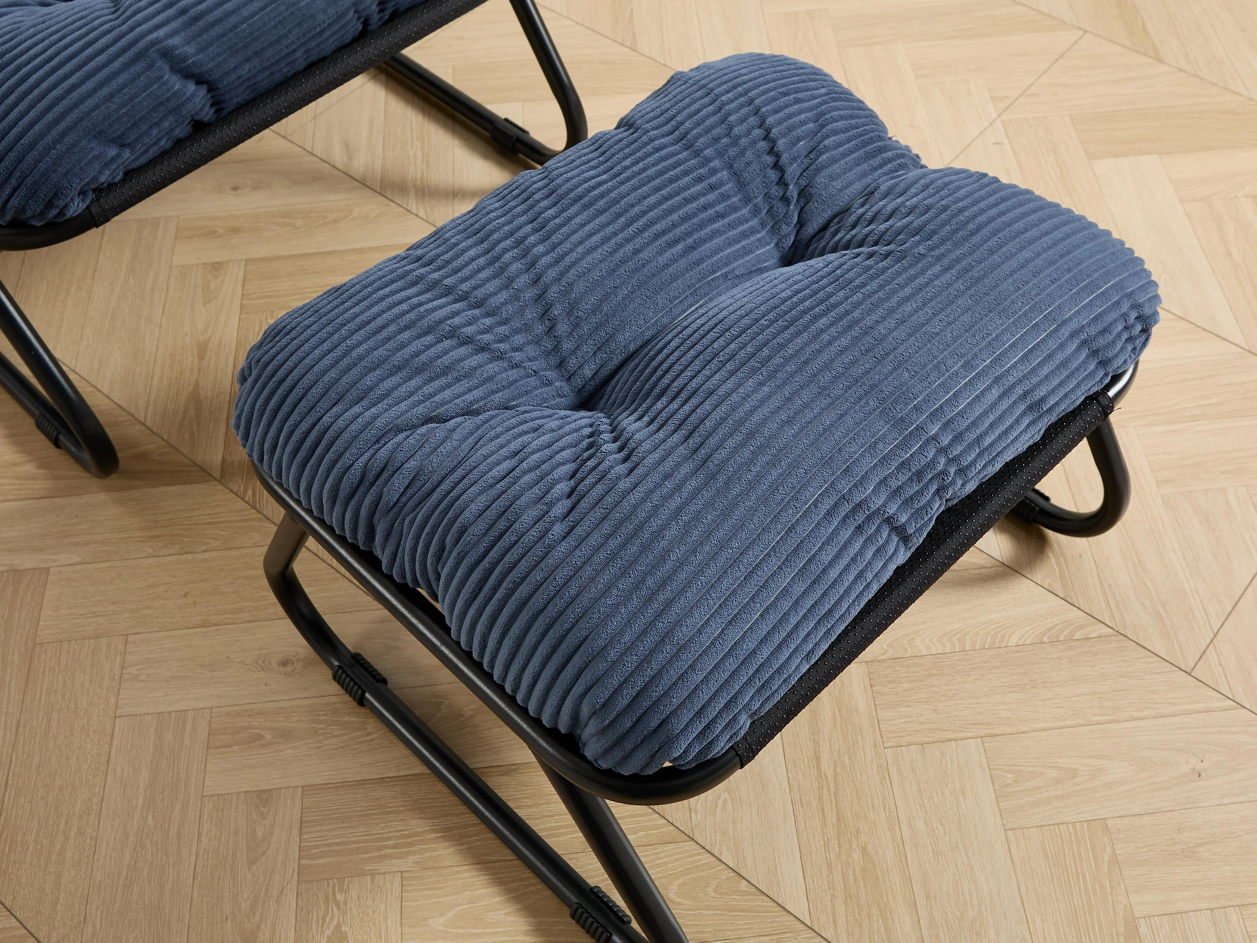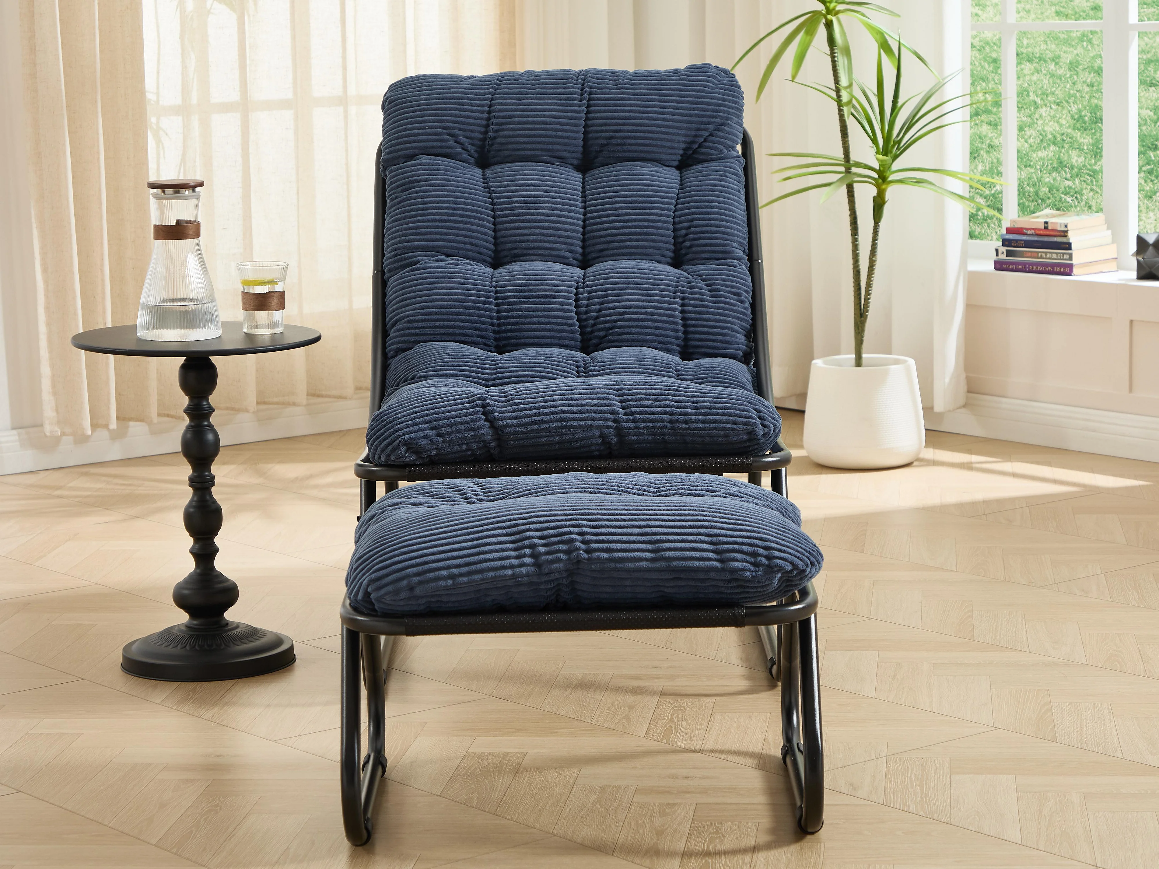 Fauteuil extérieur en acier avec coussin, pouf offert, chaise de jardin moderne pour terrasse et balcon