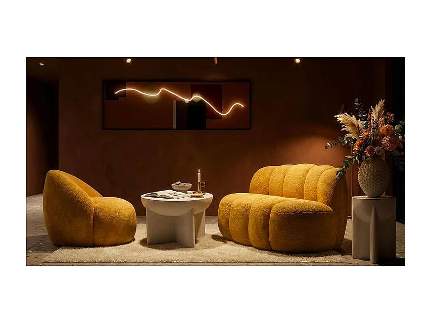 Fauteuil Ginevra moutarde bouclé design contemporain