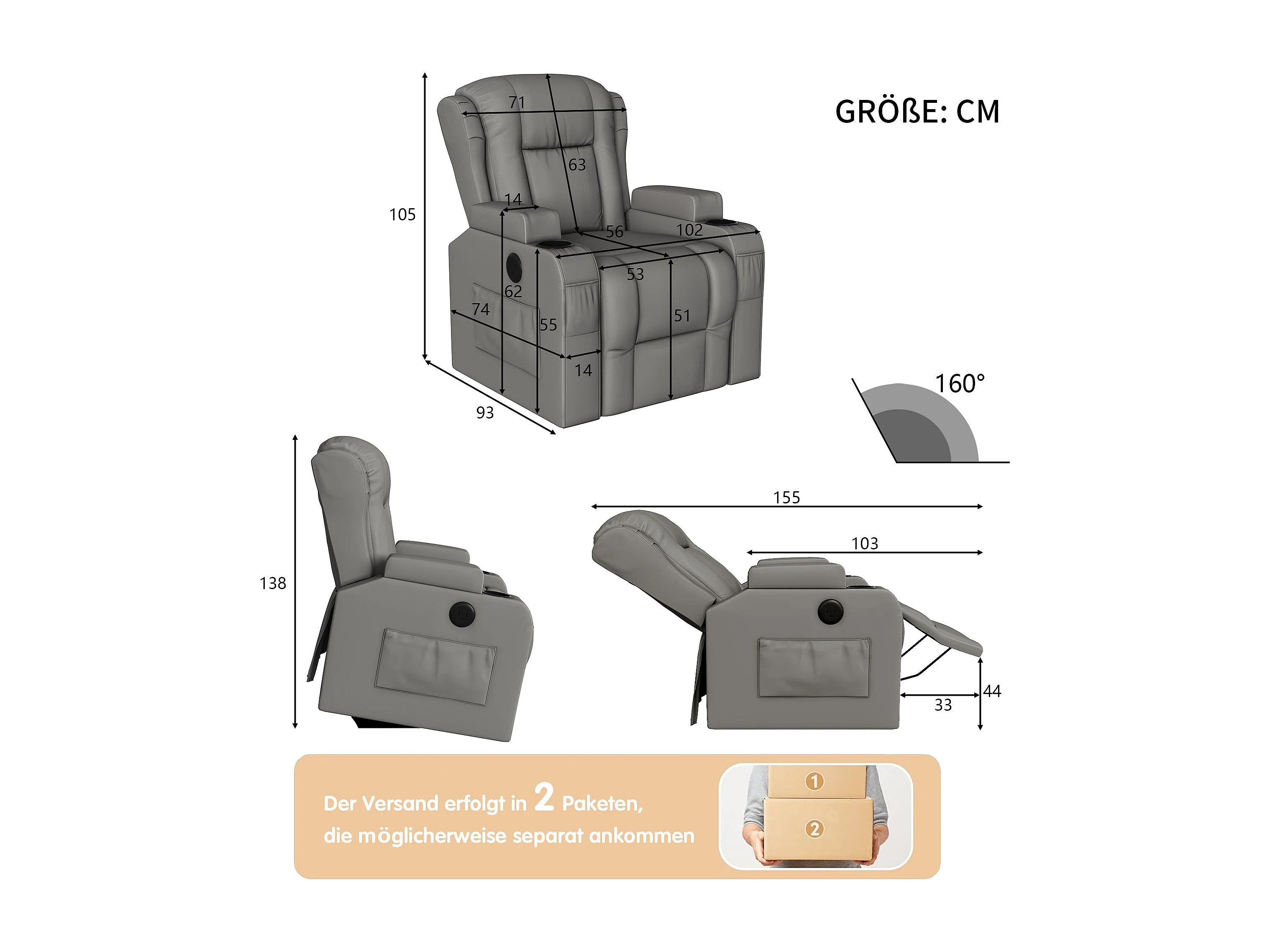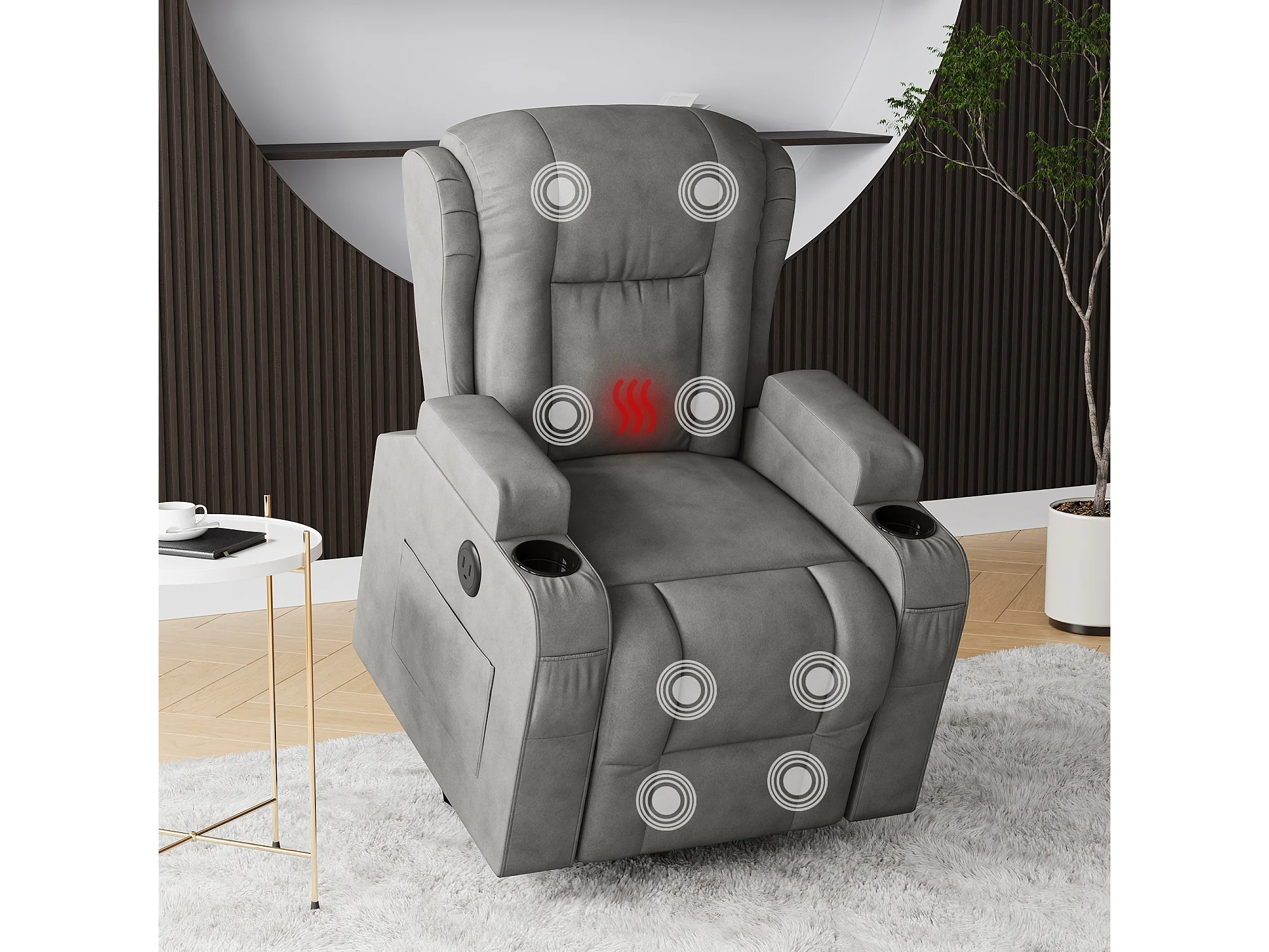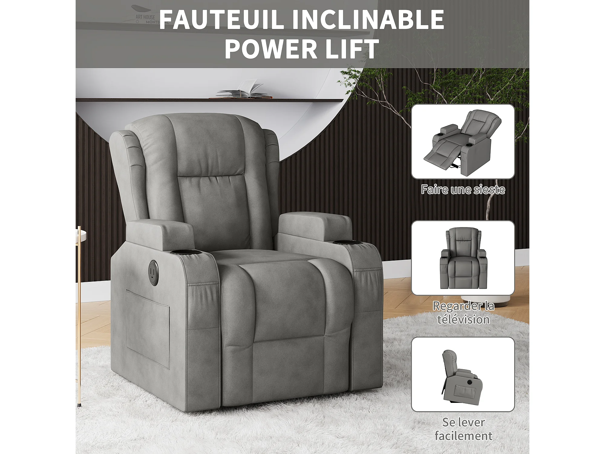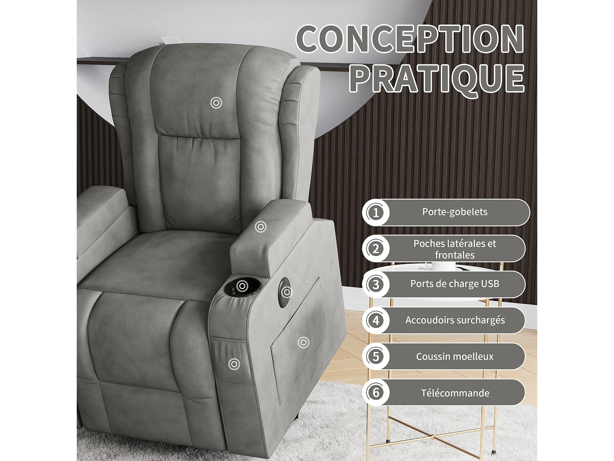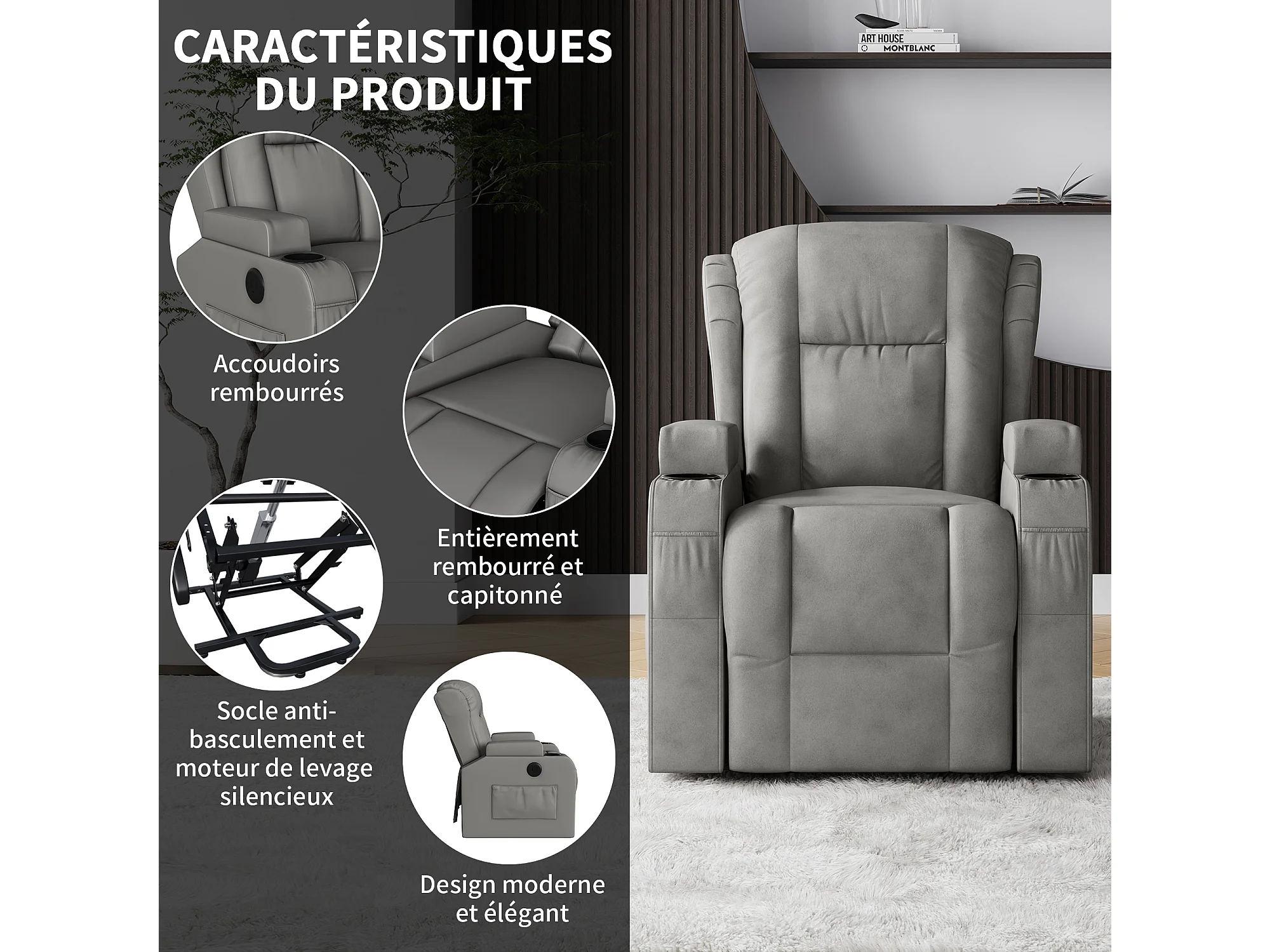 Fauteuil inclinable avec élévation électrique, fauteuil de massage avec chaleur lombaire, poches latérales, repose-pieds extensible, 2 porte-gobelets