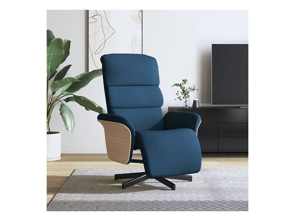 Fauteuil inclinable avec repose-pieds bleu tissu REO42719