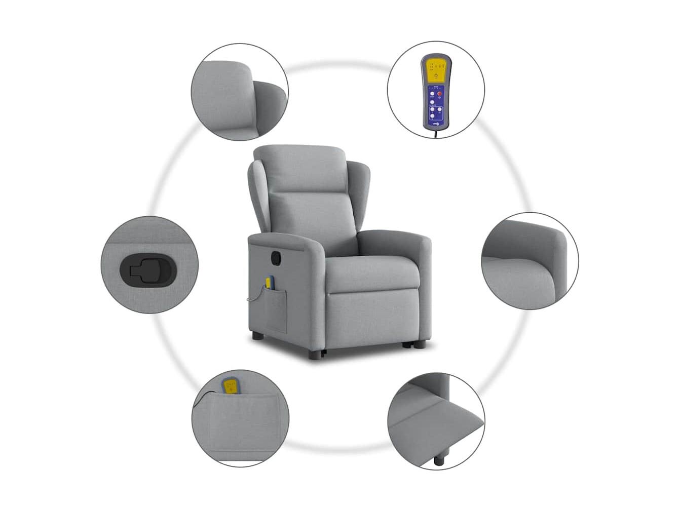 Fauteuil inclinable-Chaise de relax-Fauteuil de Massage Gris clair Tissu SHL3231