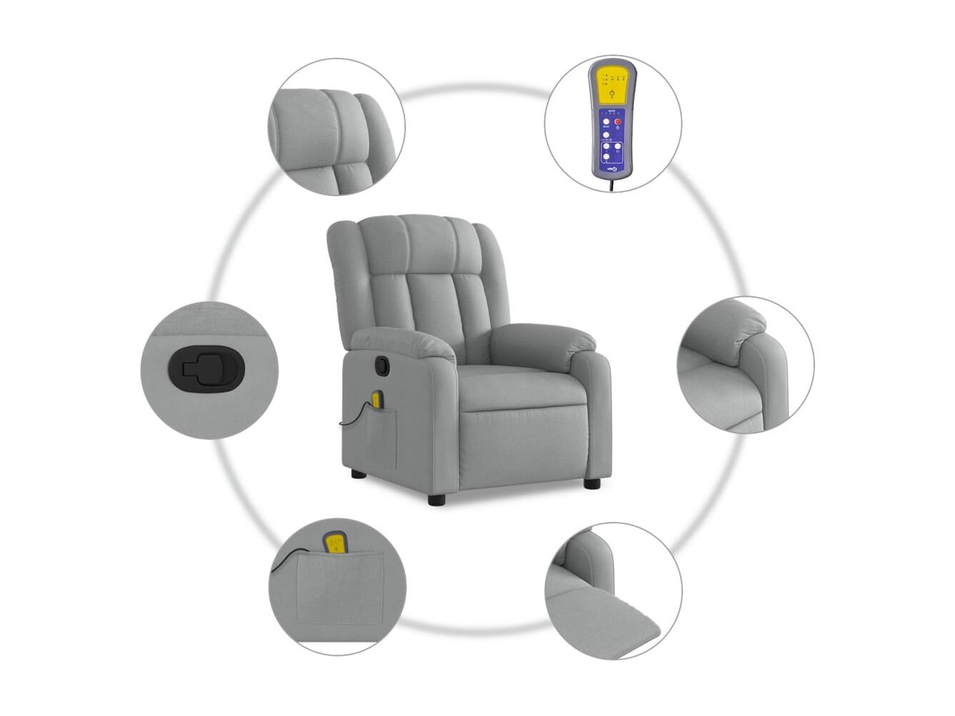 Fauteuil inclinable-Chaise de relax-Fauteuil de Massage gris clair tissu SHL4961