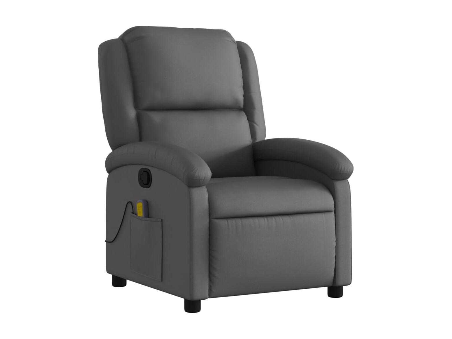 Fauteuil inclinable-Chaise de relax-Fauteuil de Massage gris cuir véritable SHL2438