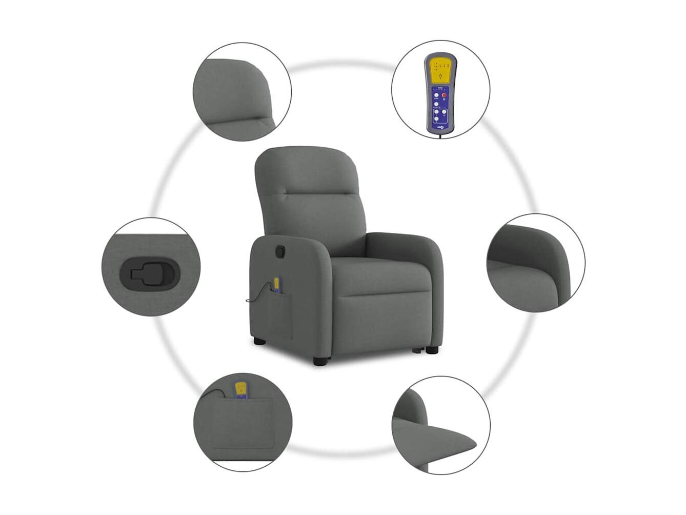 Fauteuil inclinable-Chaise de relax-Fauteuil de Massage Gris foncé Tissu SHL4502