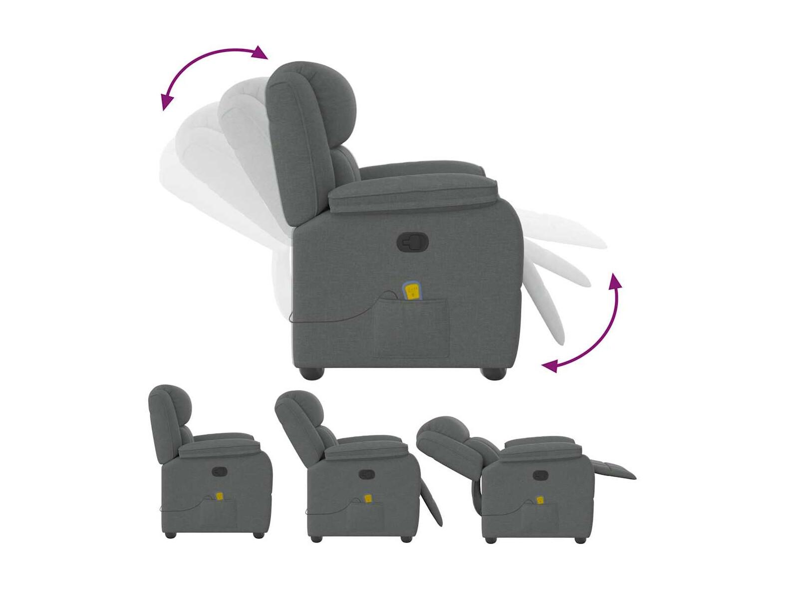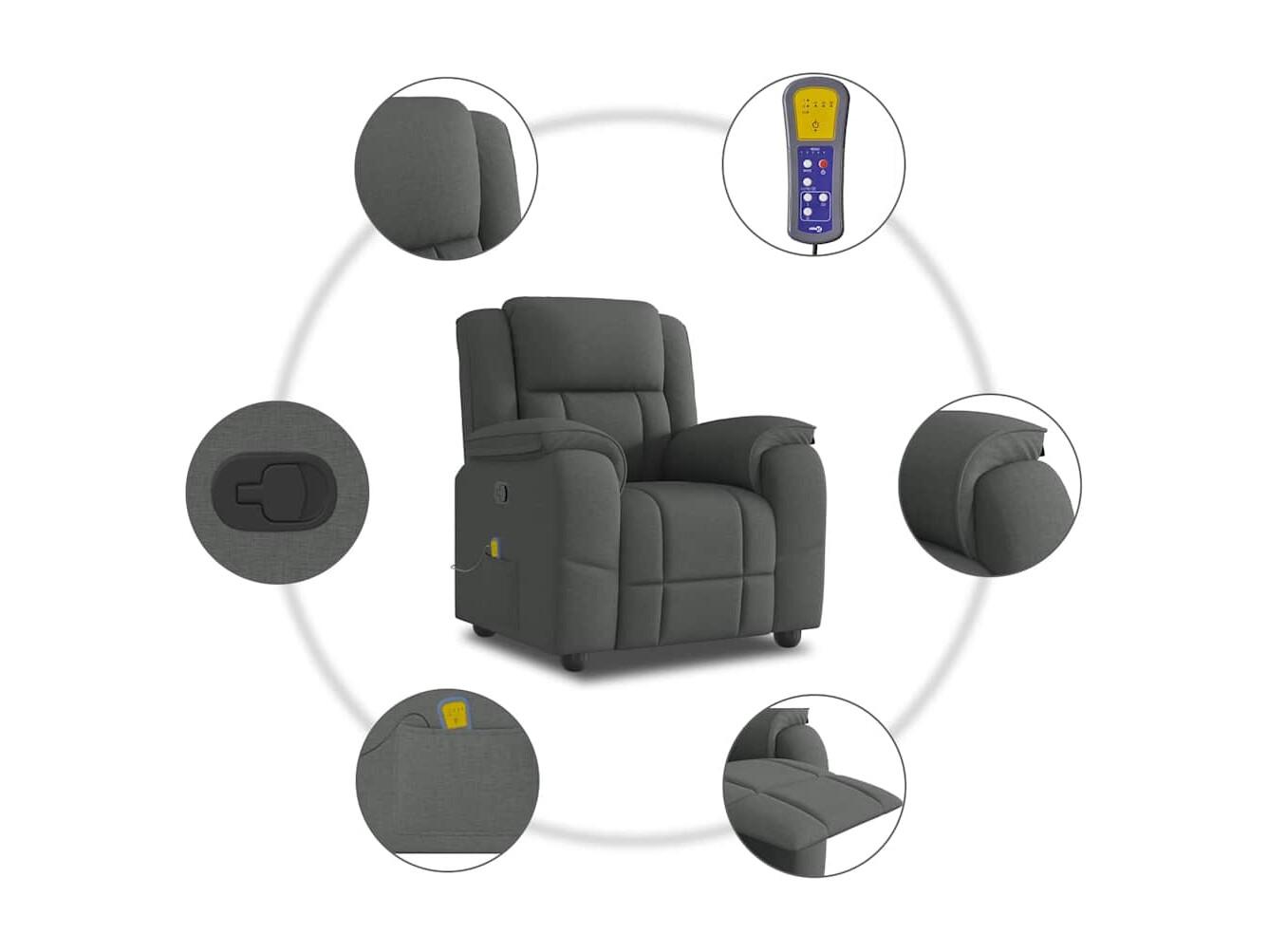 Fauteuil inclinable-Chaise de relax-Fauteuil de Massage Gris foncé Tissu SHL4926