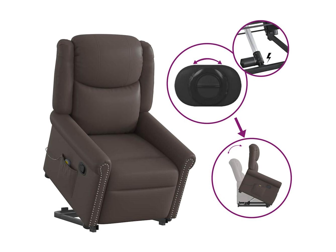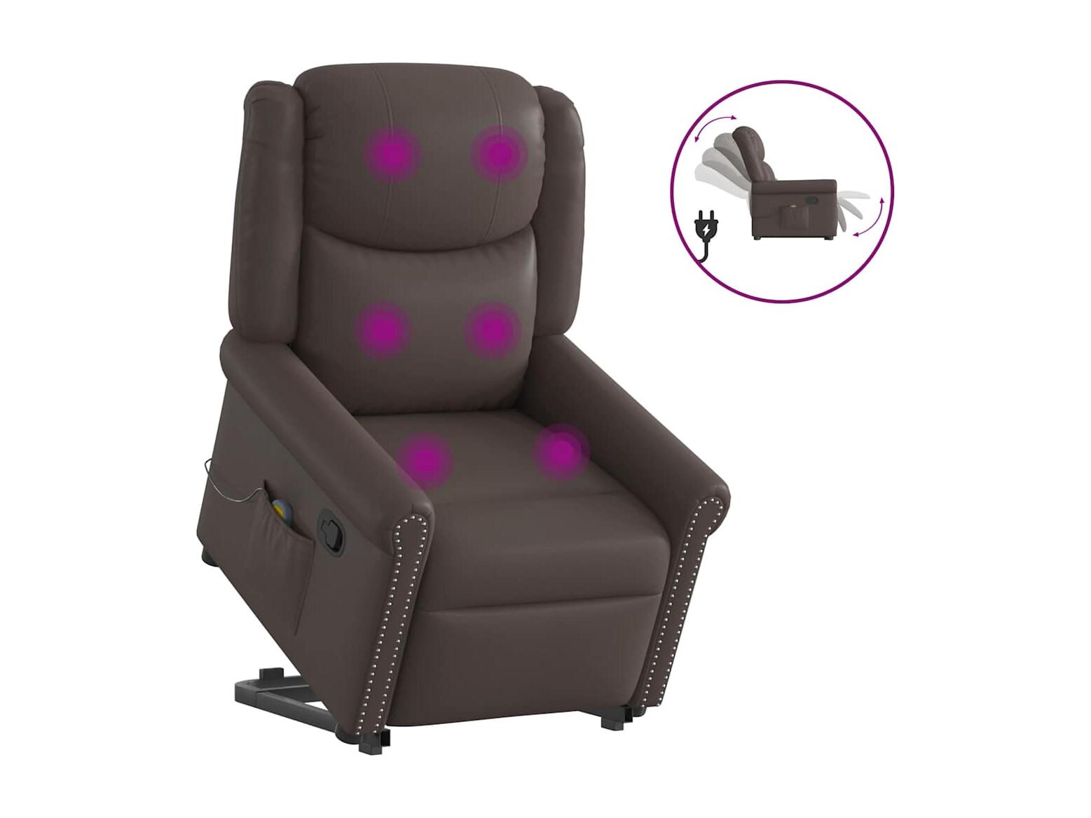 Fauteuil inclinable-Chaise de relax-Fauteuil de Massage marron brillant similicuir SHL3222