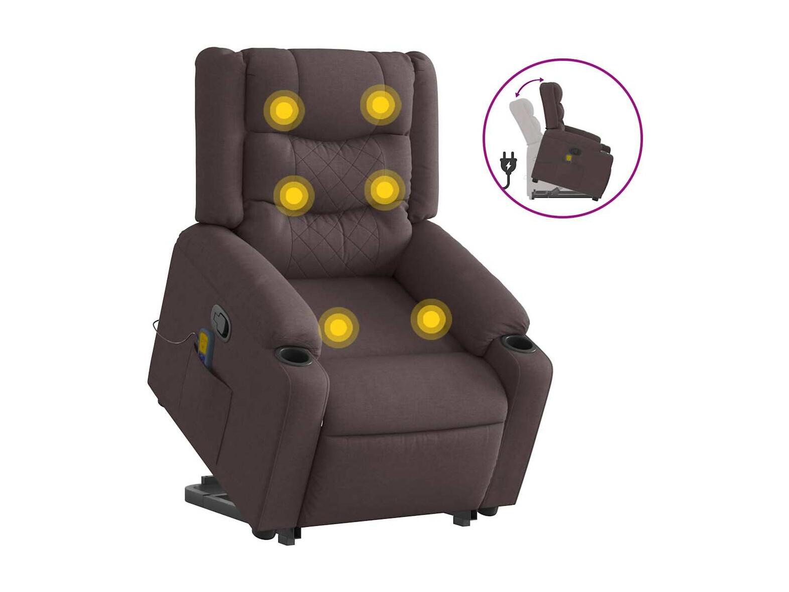 Fauteuil inclinable-Chaise de relax-Fauteuil de Massage Marron foncé Tissu SHL1166