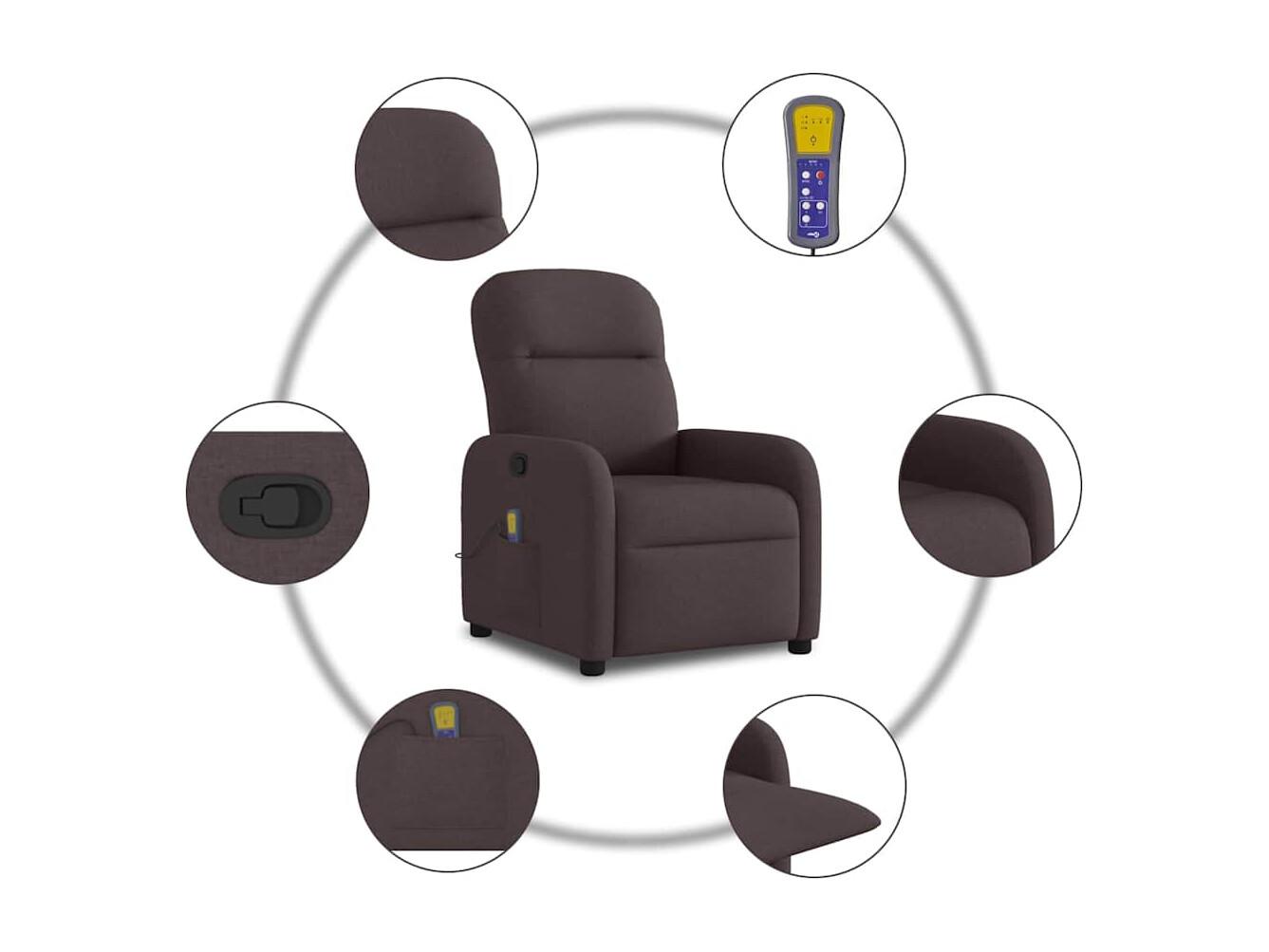 Fauteuil inclinable-Chaise de relax-Fauteuil de Massage Marron foncé Tissu SHL3962