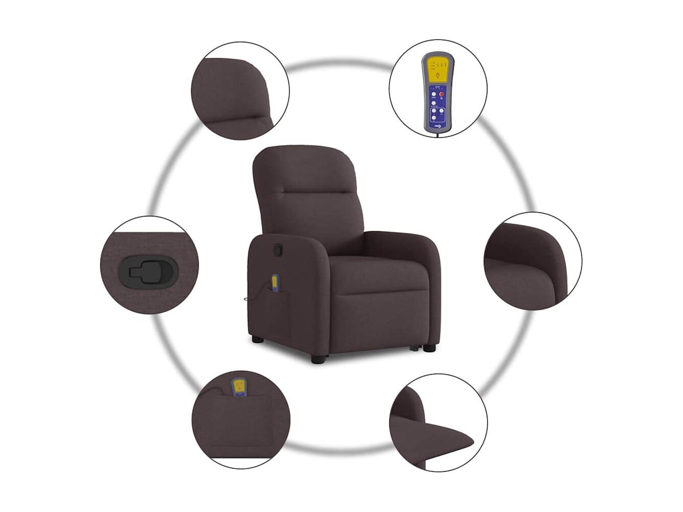Fauteuil inclinable-Chaise de relax-Fauteuil de Massage Marron foncé Tissu SHL4345