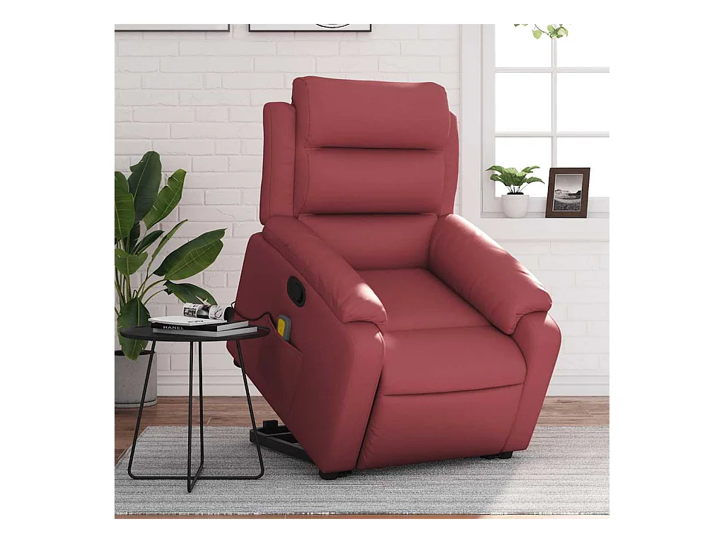 Fauteuil inclinable-Chaise de relax-Fauteuil de Massage Rouge bordeaux Similicuir SHL3427