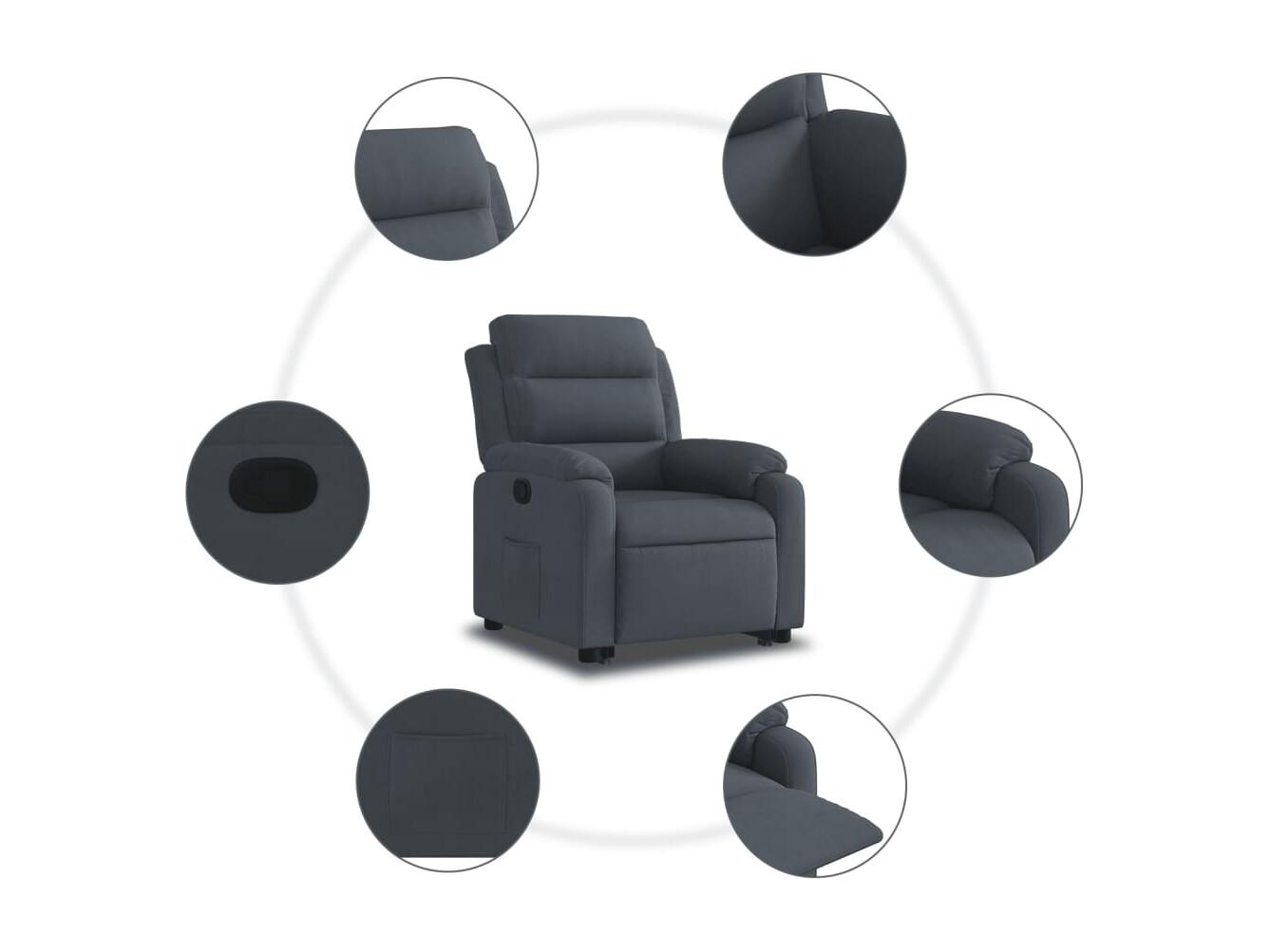 Fauteuil inclinable-Chaise de relax-Fauteuil salon Gris foncé Velours SHL983