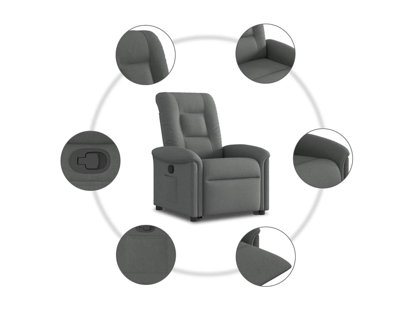 Fauteuil inclinable-Chaise de relax-Fauteuil TV Gris foncé Tissu SHL1432