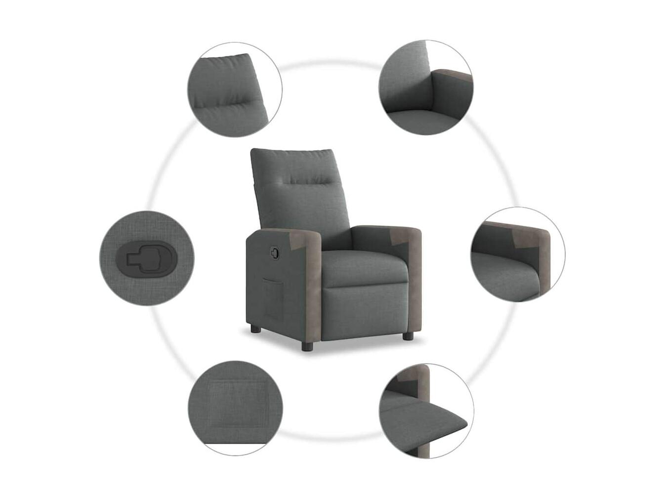 Fauteuil inclinable-Chaise de relax-Fauteuil TV Gris foncé Tissu SHL5442