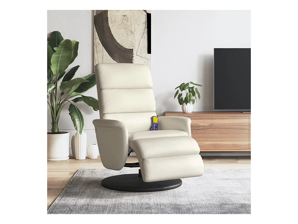 Fauteuil inclinable de massage et repose-pieds crème similicuir REO17065