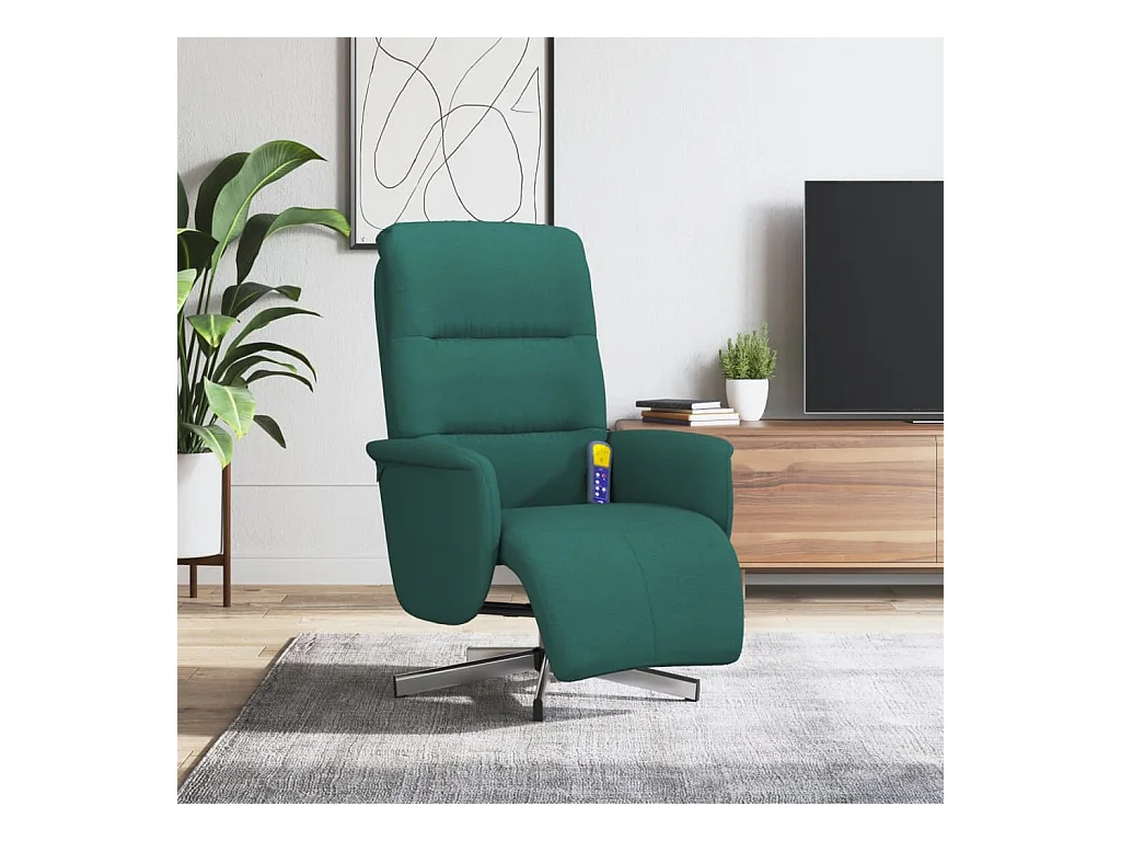 Fauteuil inclinable de massage et repose-pieds vert foncé tissu REO89833
