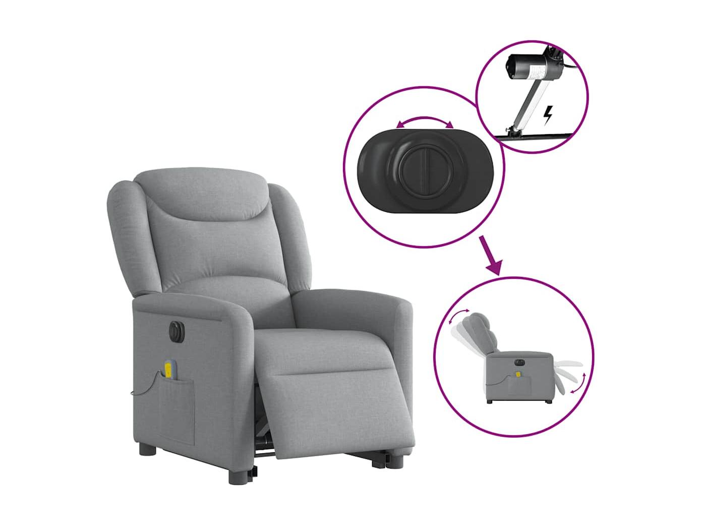 Fauteuil inclinable électrique-Chaise de relax-Fauteuil de Massage Gris clair Tissu SHL2582