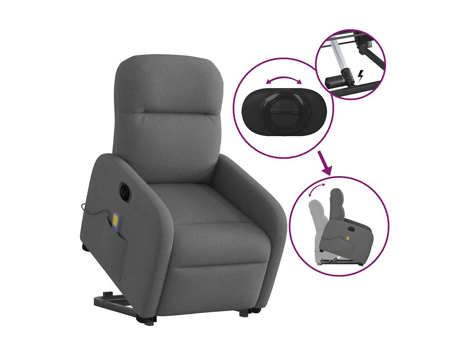 Fauteuil inclinable électrique-Chaise de relax-Fauteuil de Massage Gris foncé Tissu SHL1962