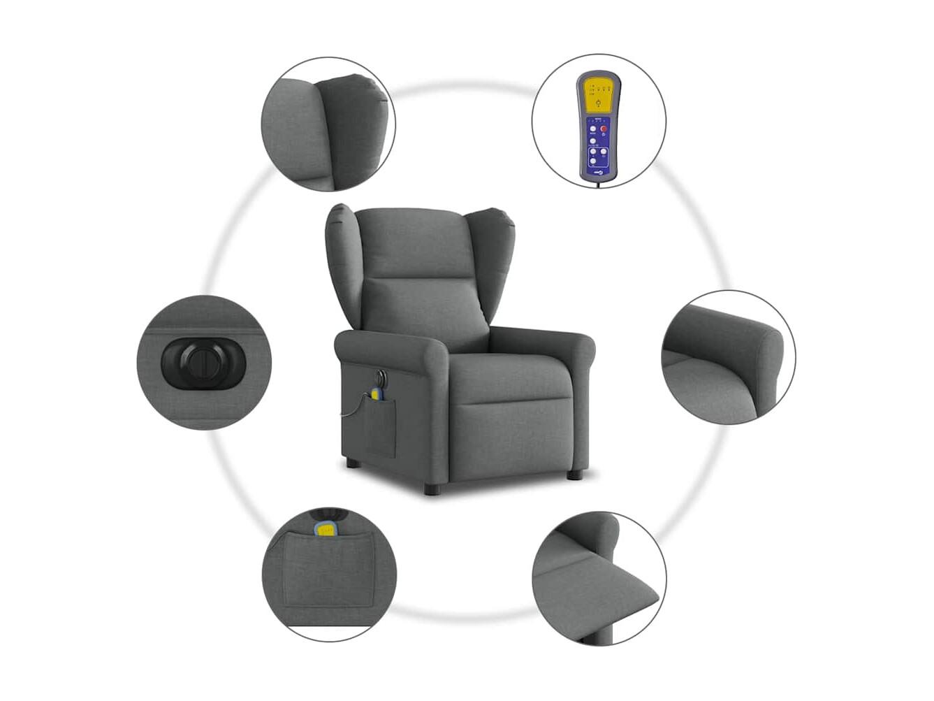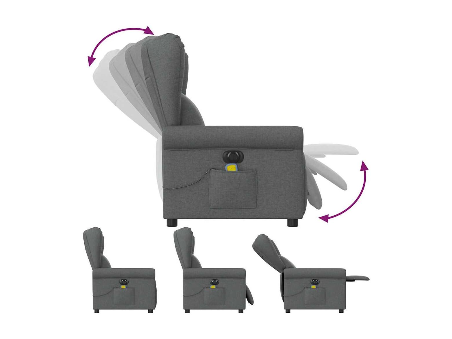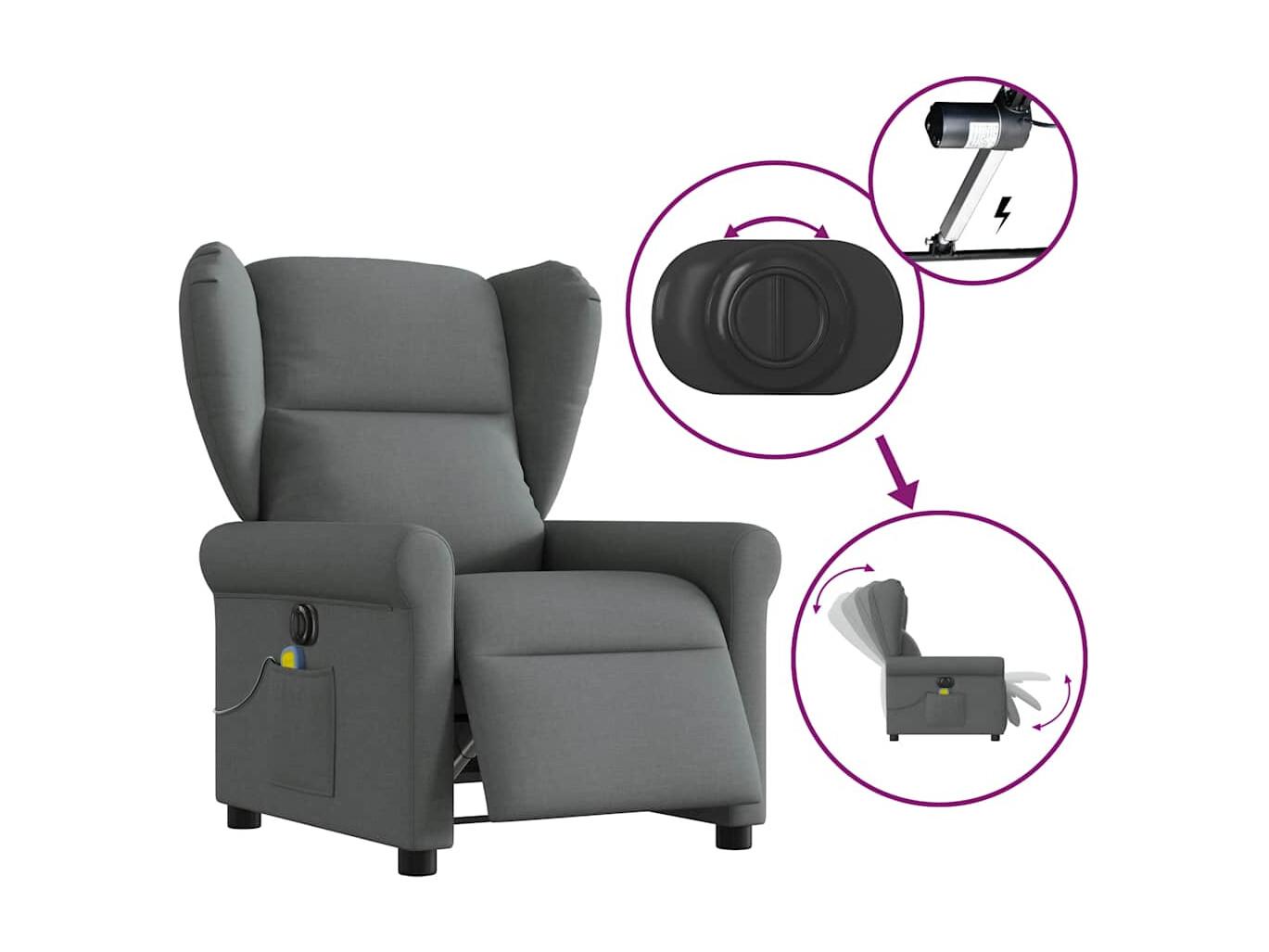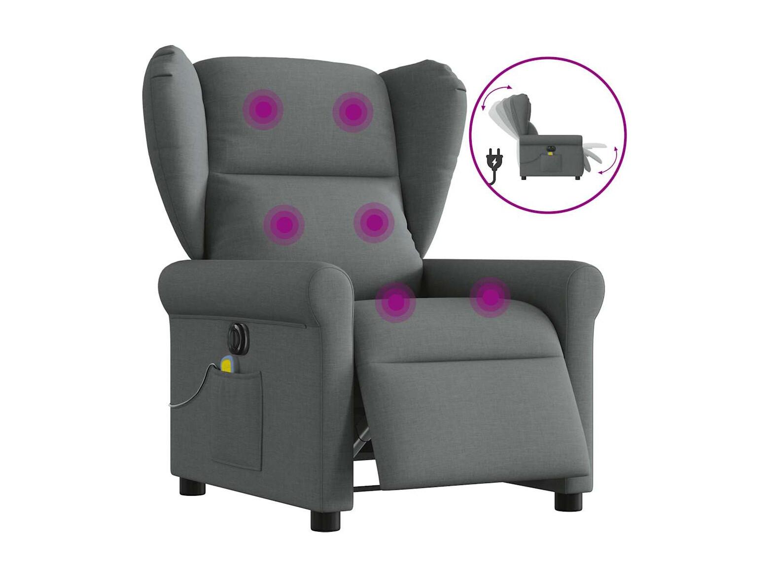 Fauteuil inclinable électrique-Chaise de relax-Fauteuil de Massage gris foncé tissu SHL3309
